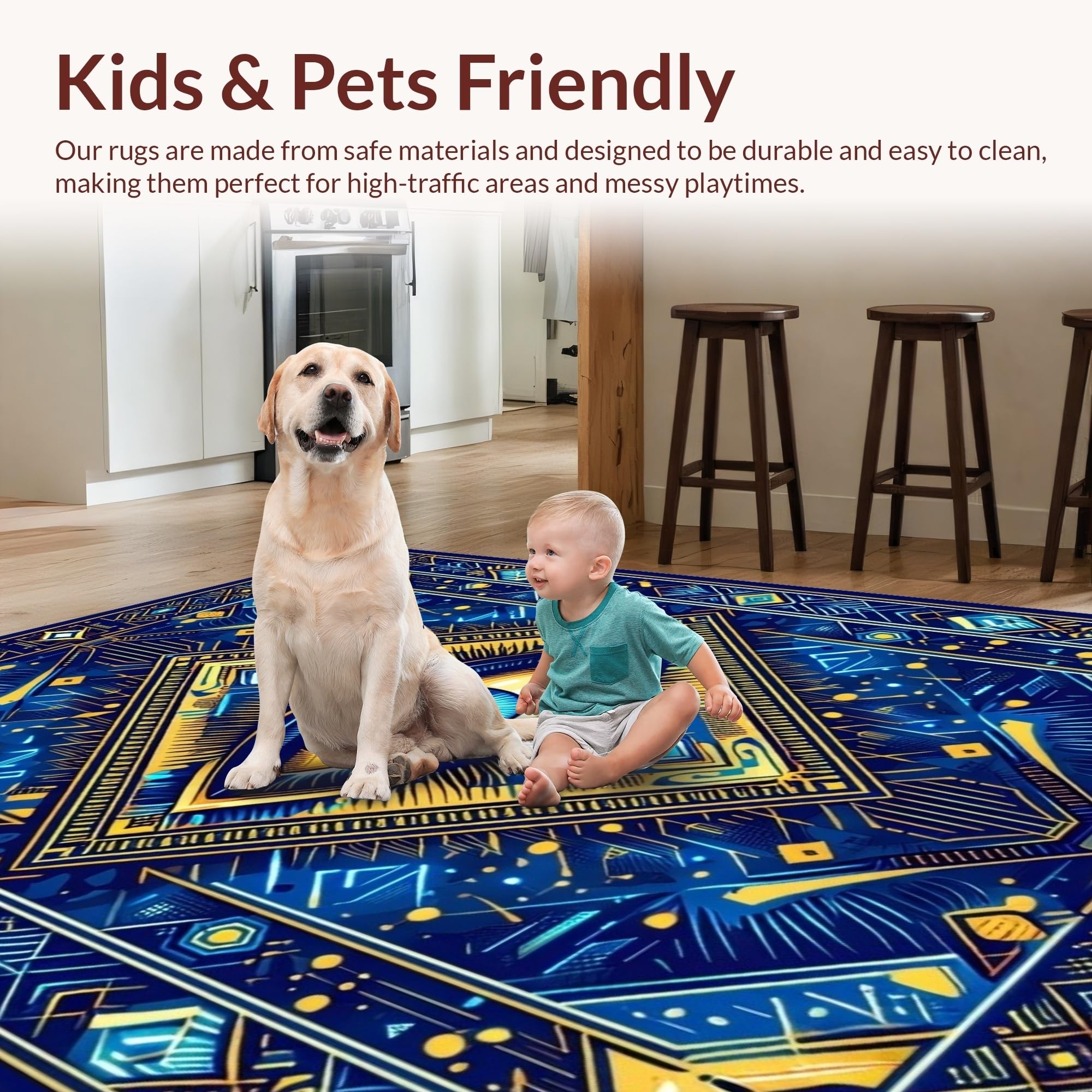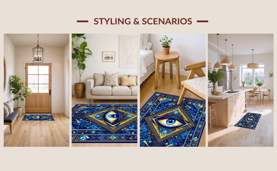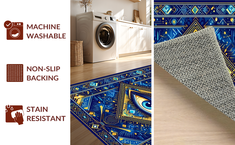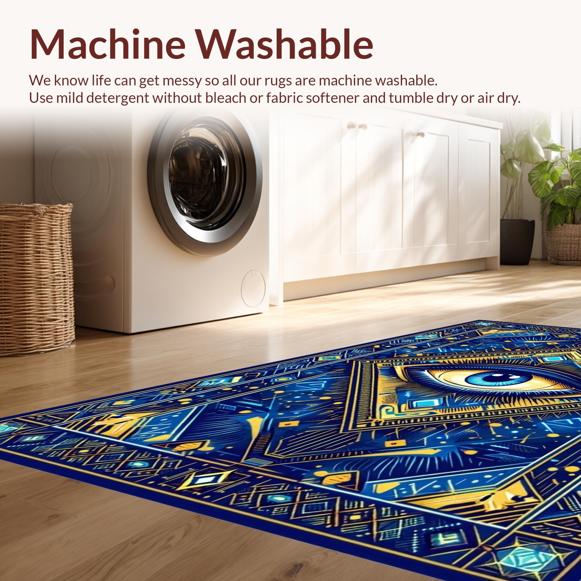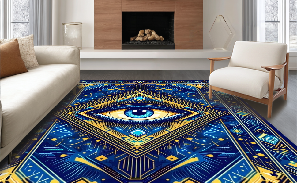 Ultra Soft Area Rug, Non Slip, Stain Resistant, Washable Area Rugs for Living Room, Bedroom, Modern Vibrant Evil Eye Design(Blue) Overview:
