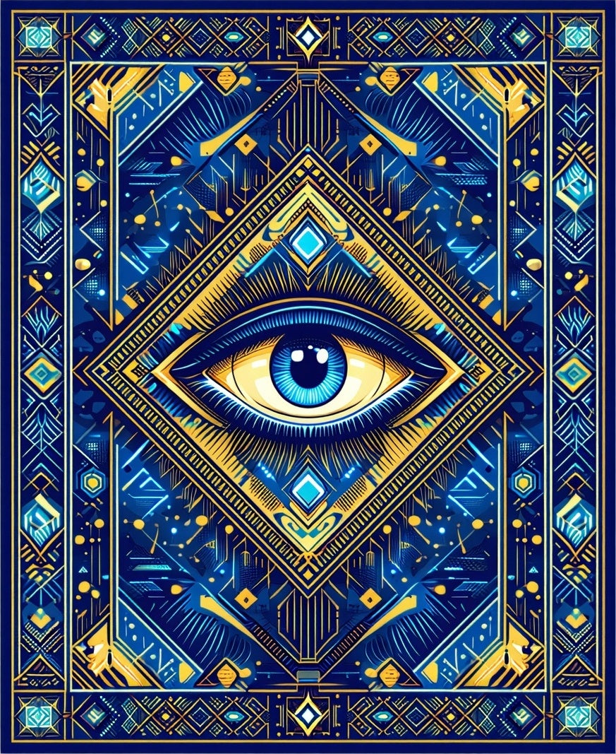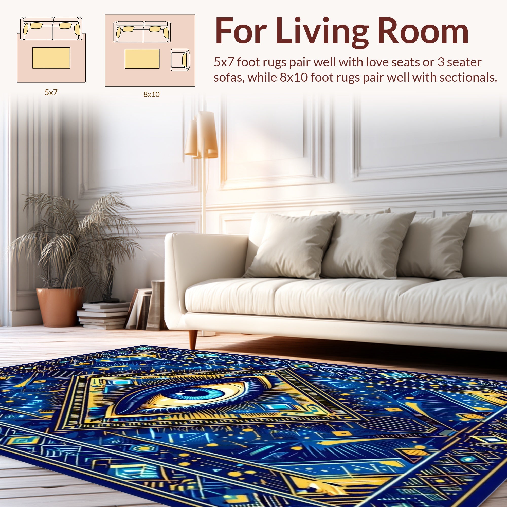 Flatwoven High Traffic Area Rug, Modern Vibrant Evil Eye Design, Non Slip, Stain Resistant, Washable Area Rugs for Living Room, Bedroom (Blue) Overview: