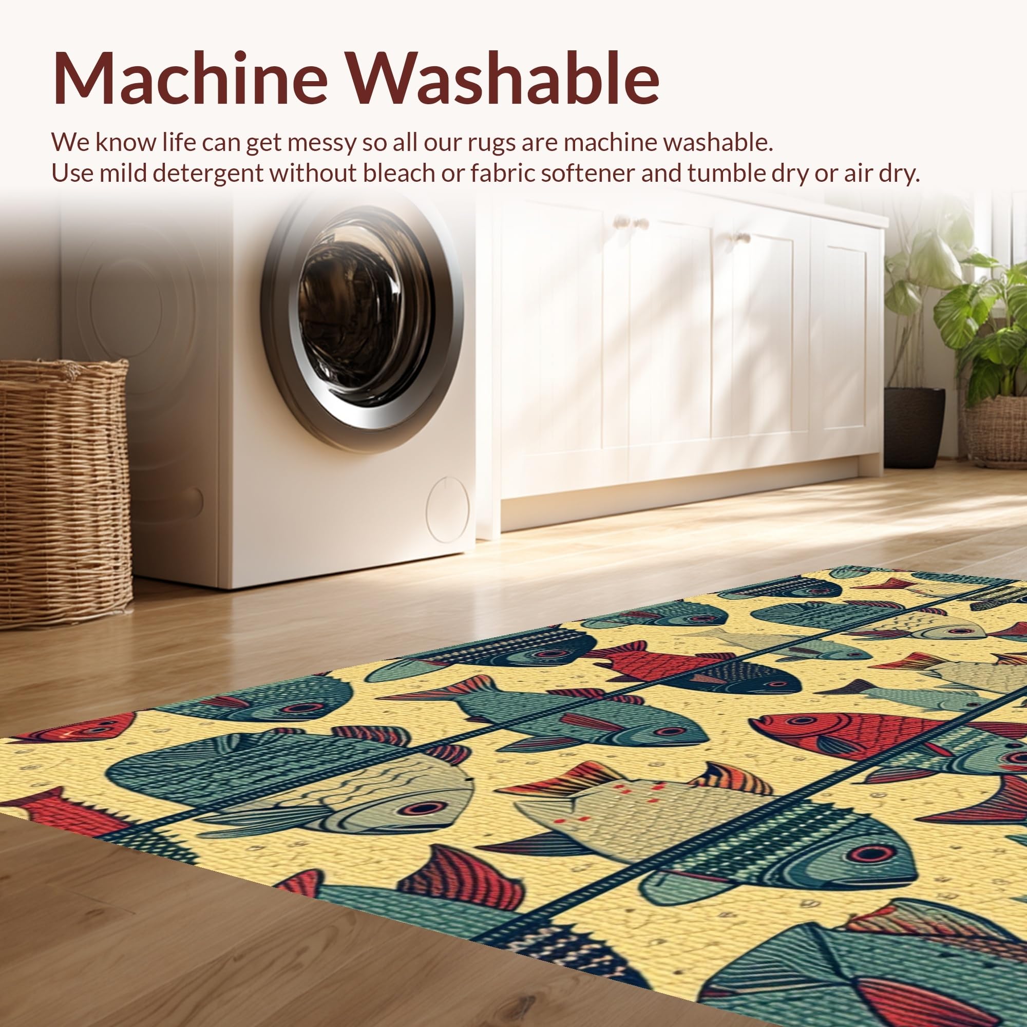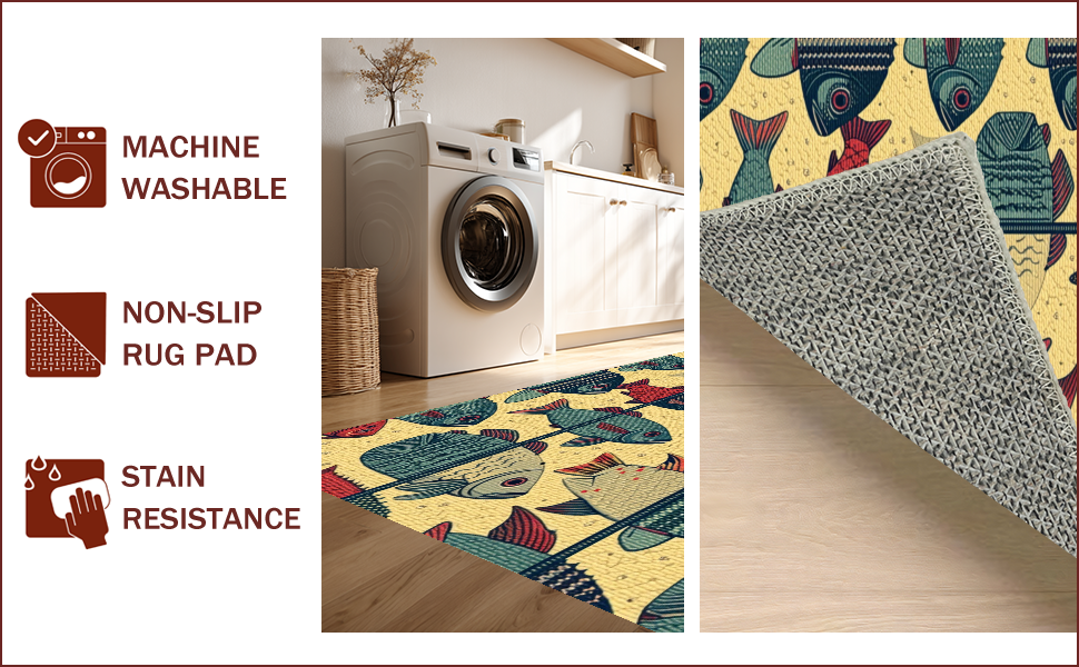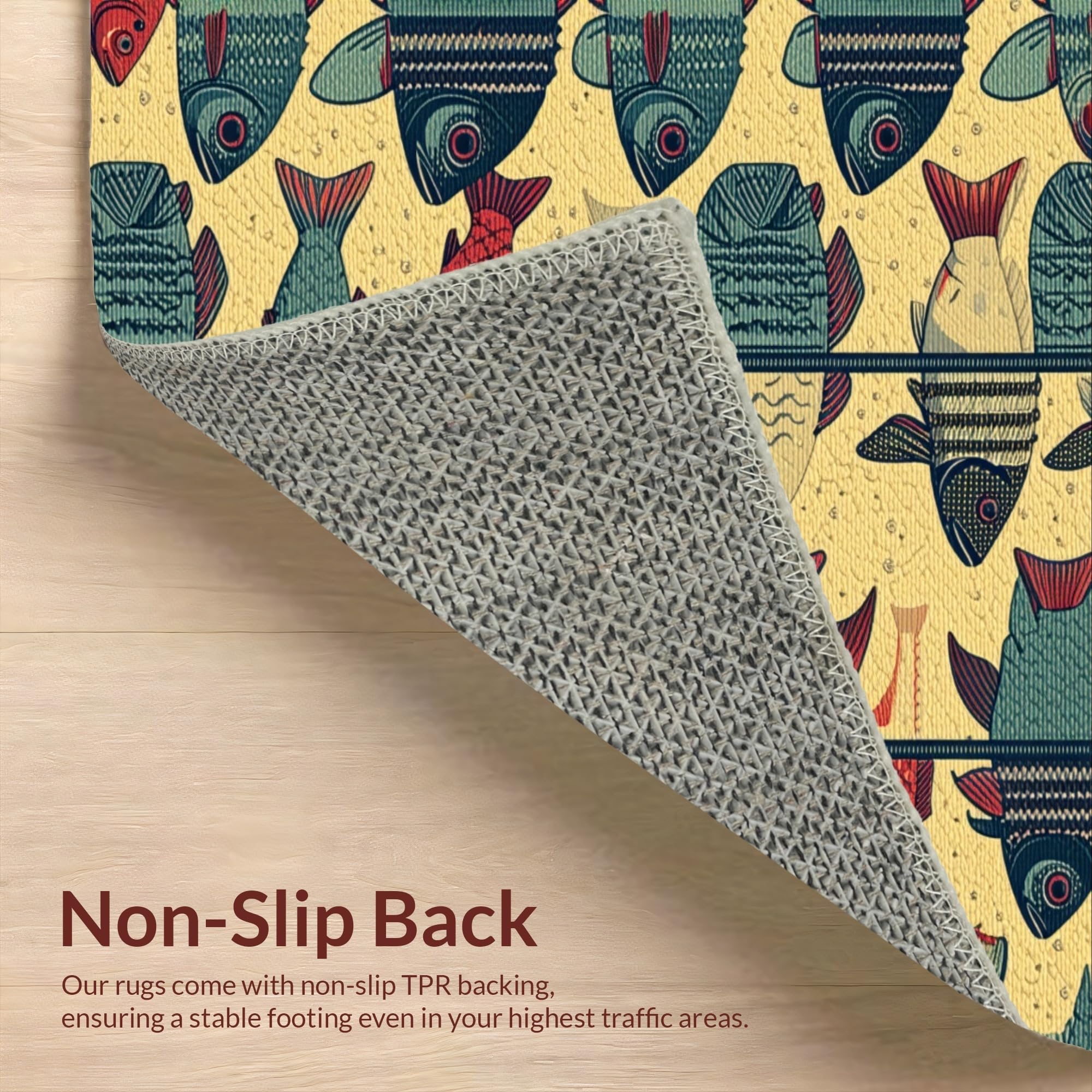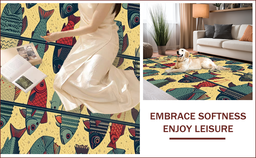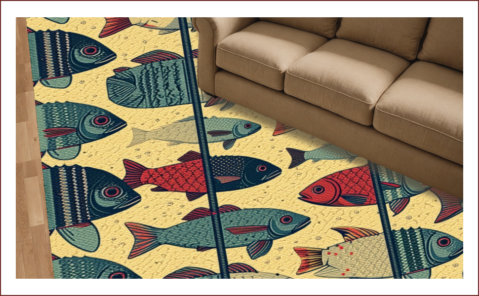Ultra Soft Area Rug, Non Slip, Stain Resistant, Washable Area Rugs for Living Room, Bedroom, Modern Vibrant Fishing Bathmat for Kids Room(Gold) Overview: