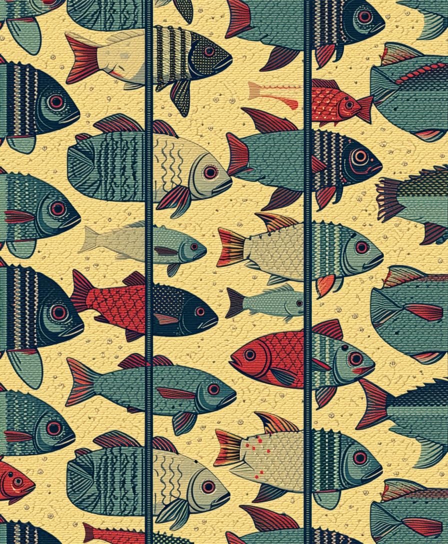 Modern Vibrant Fishing Bathmat for Kids Room(Gold)