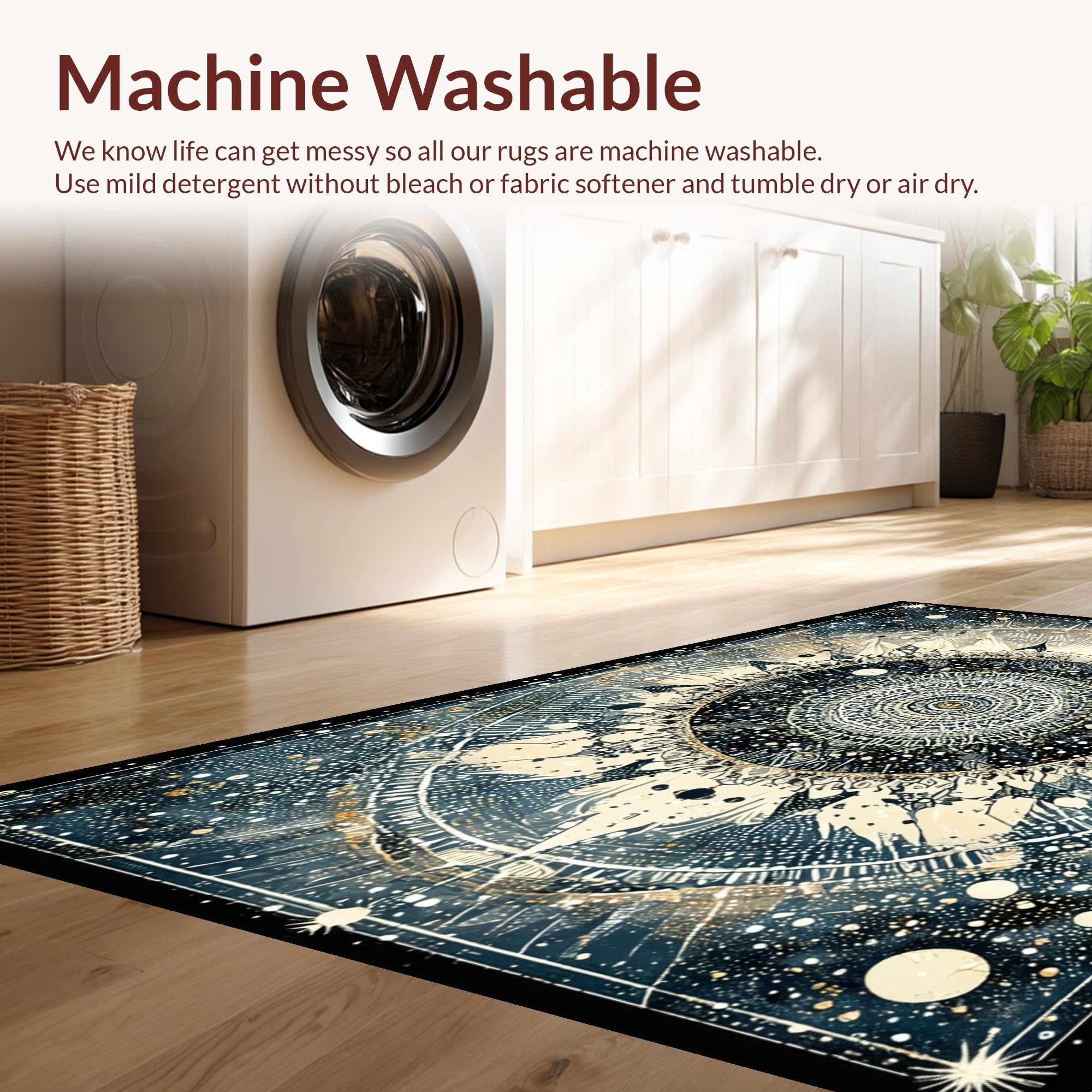- Machine Washable: Our rugs can be easily thrown in the wash machine.