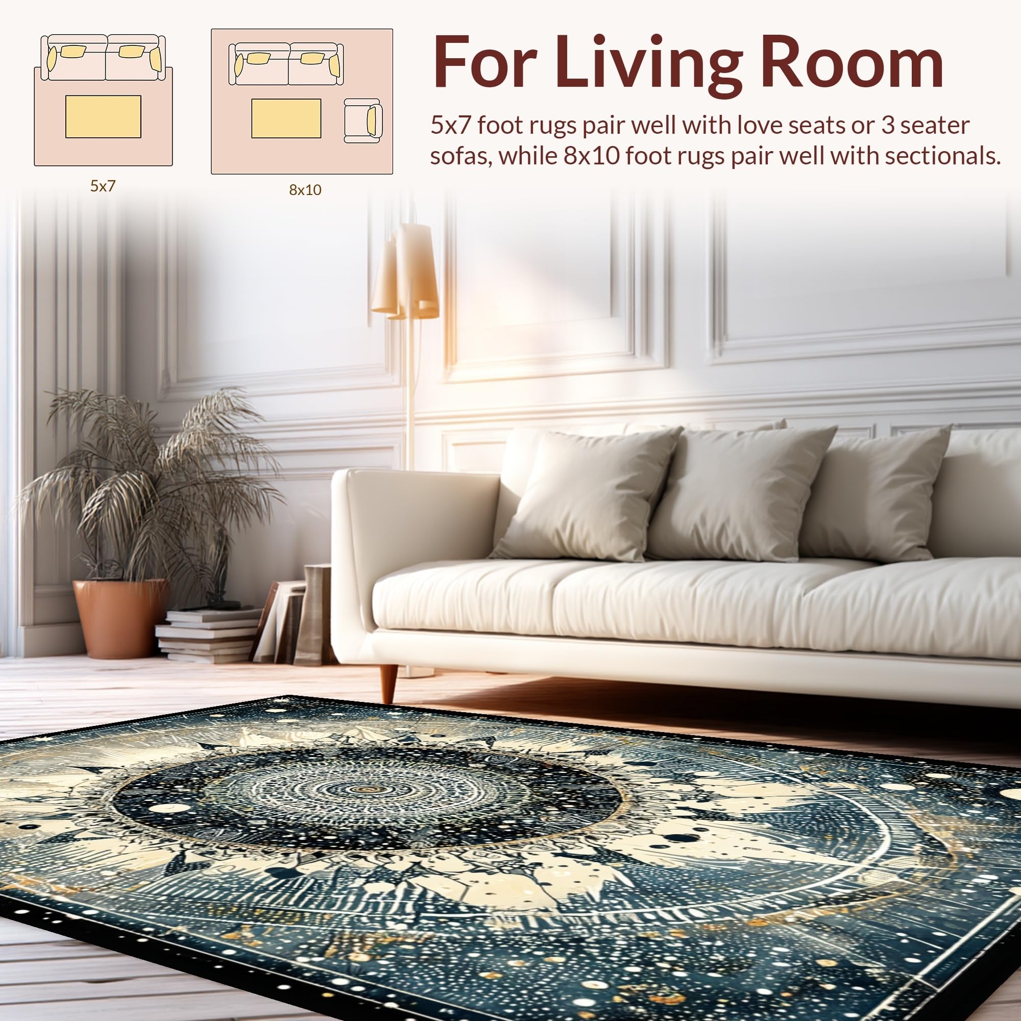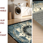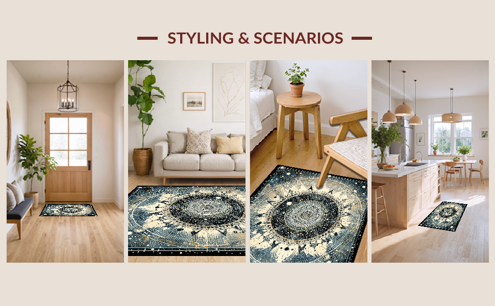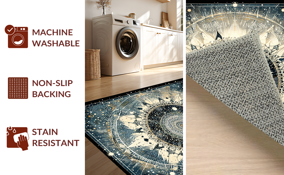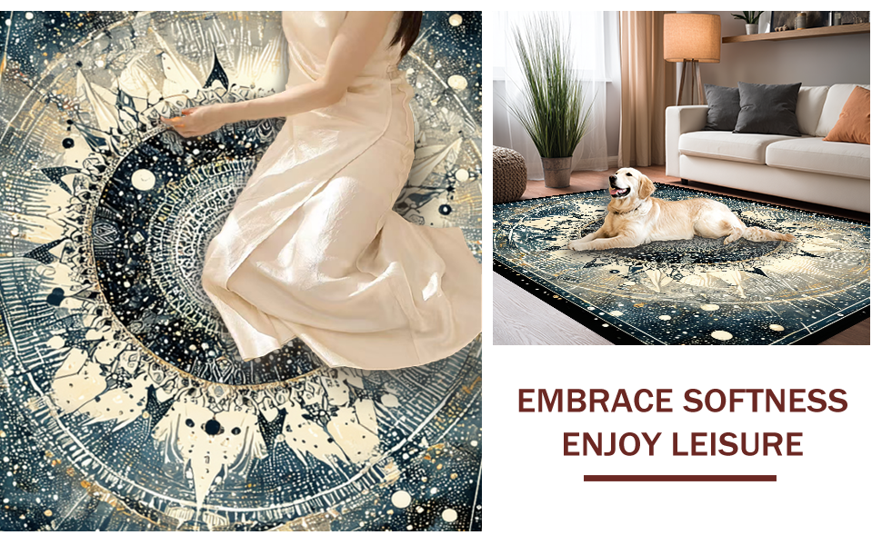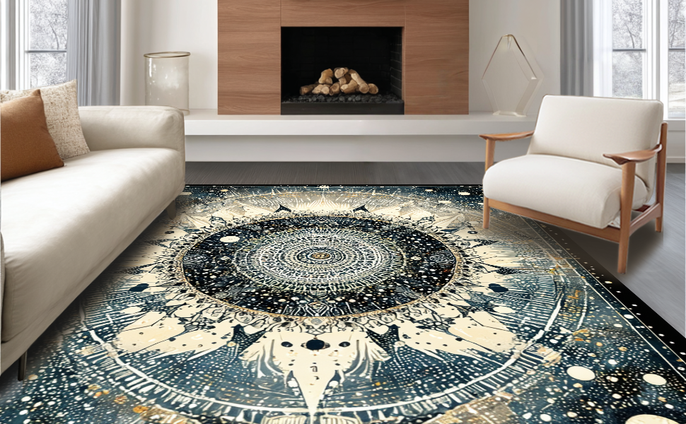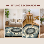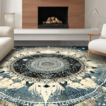 Ultra Soft Area Rug, Non Slip, Stain Resistant, Washable Area Rugs for Living Room, Bedroom, Moonlit Boho Astrology Rug Enchanted Mandala Lunar Cycle and Solar Rays Art(Black) Overview: