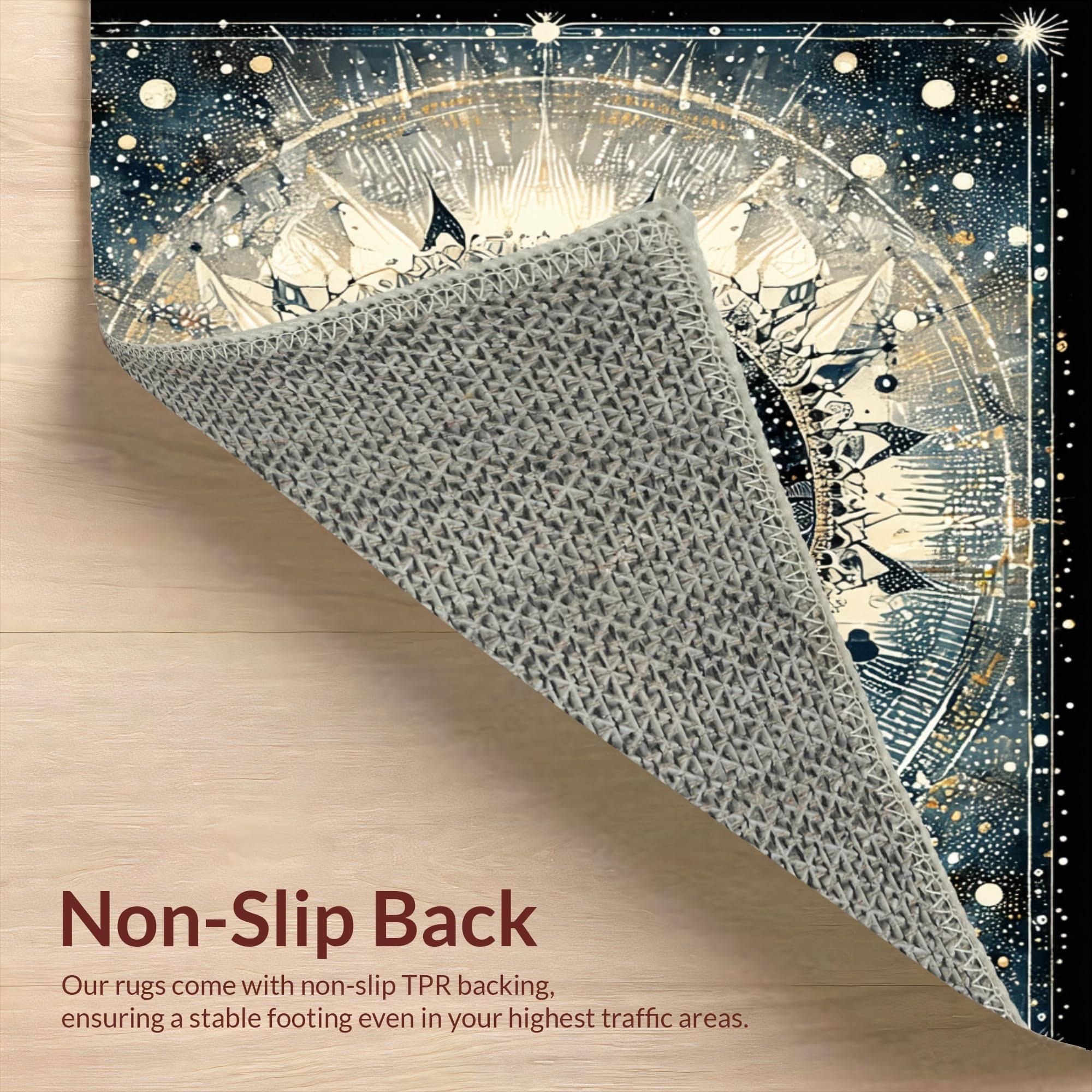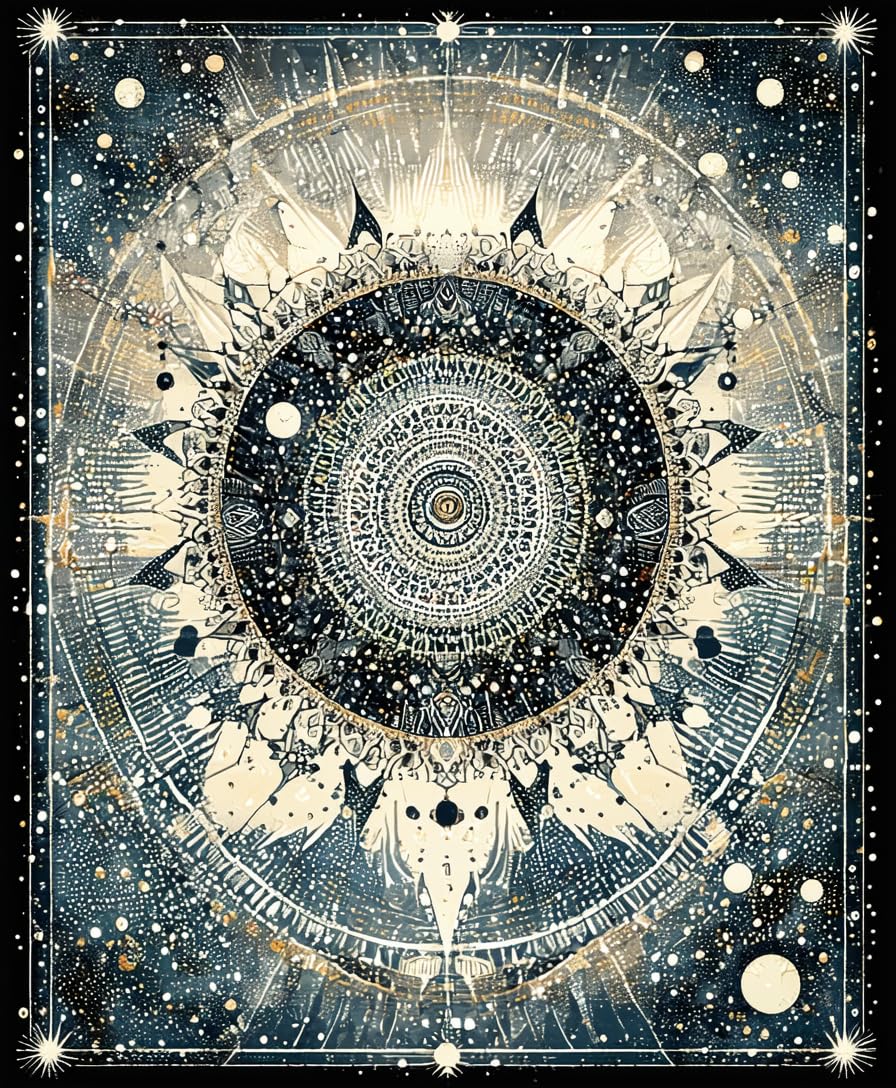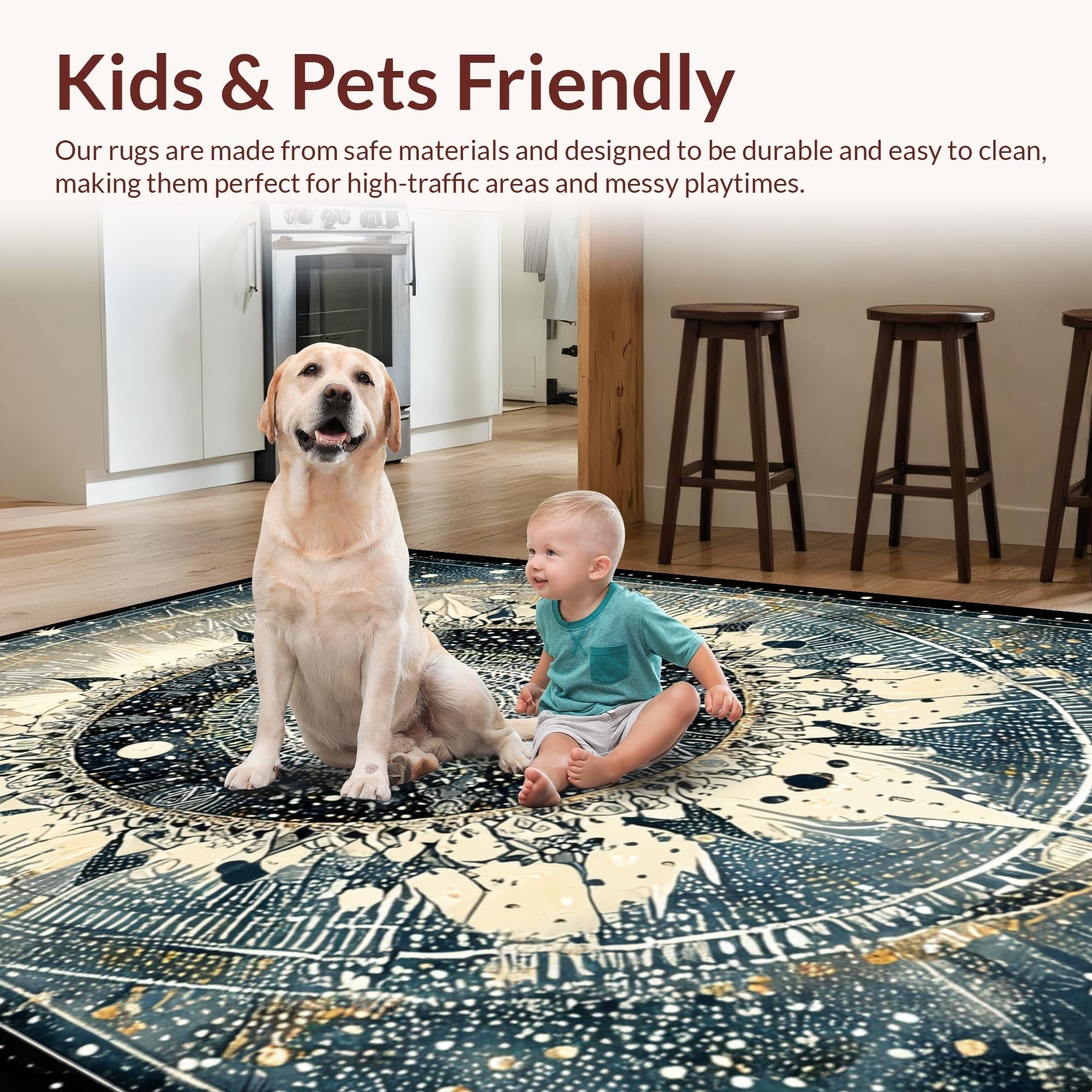 Ultra Soft Area Rug, Non Slip, Stain Resistant, Washable Area Rugs for Living Room, Bedroom, Moonlit Boho Astrology Rug Enchanted Mandala Lunar Cycle and Solar Rays Art(Black) Overview: