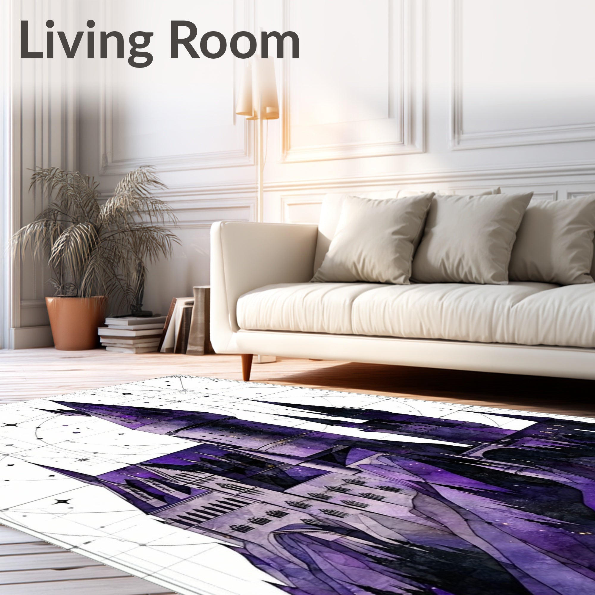 Flatwoven High Traffic Area Rug, Motif Welcome Area Rug, Non Slip, Stain Resistant, Washable Area Rugs for Living Room, Bedroom (Purple) Overview:
