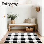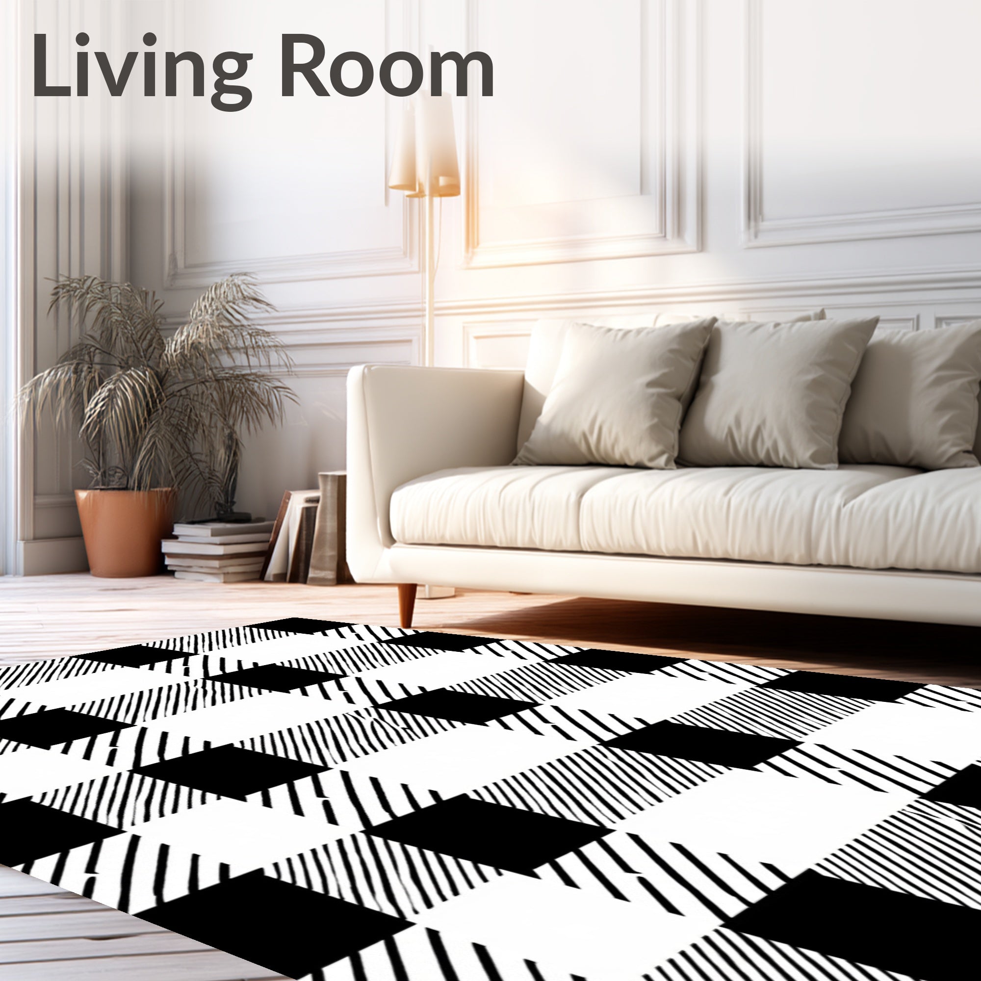 Ultra Soft Area Rug, Non Slip, Stain Resistant, Washable Area Rugs for Living Room, Bedroom, Mountain Gingham Front Step Greeting(Black) Overview: