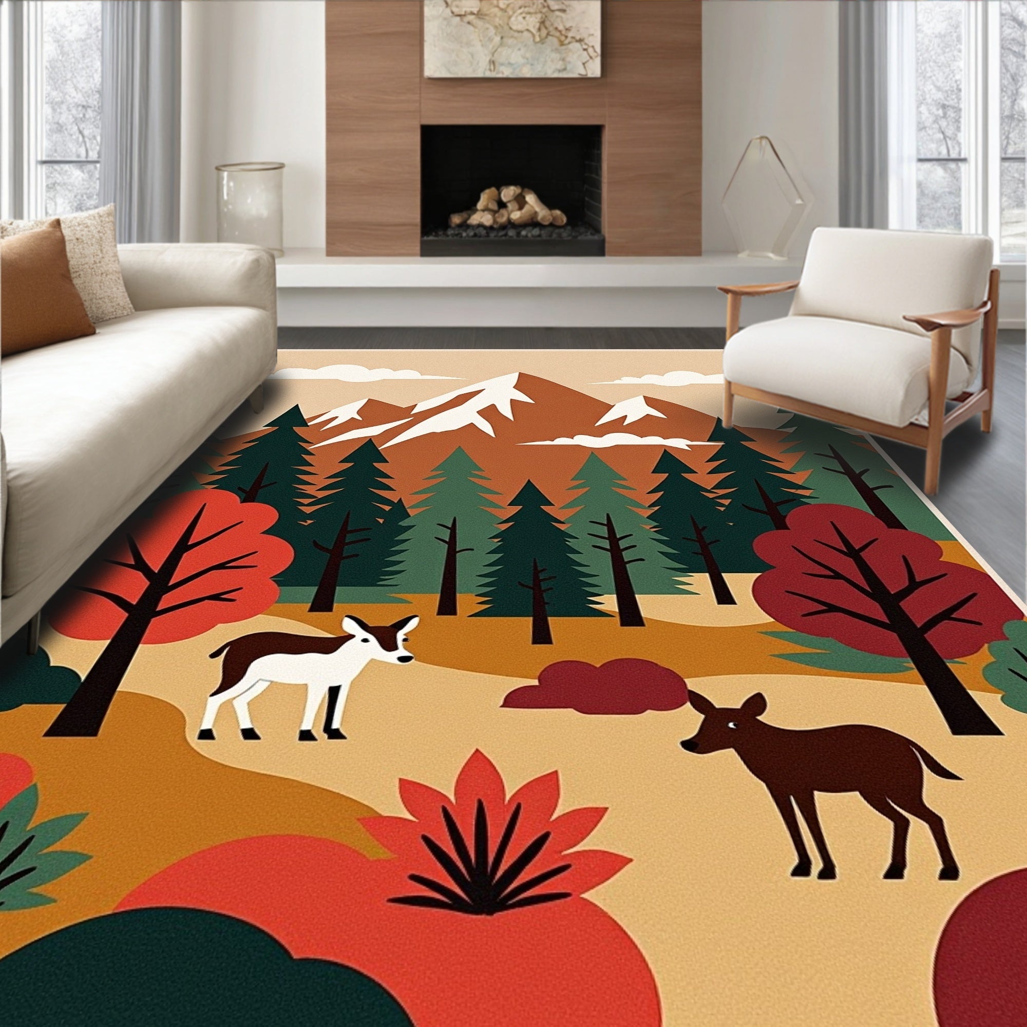 Flatwoven High Traffic Area Rug, Mountain Wildlife Half Round Protective Slice, Non Slip, Stain Resistant, Washable Area Rugs for Living Room, Bedroom (Brown) Overview: