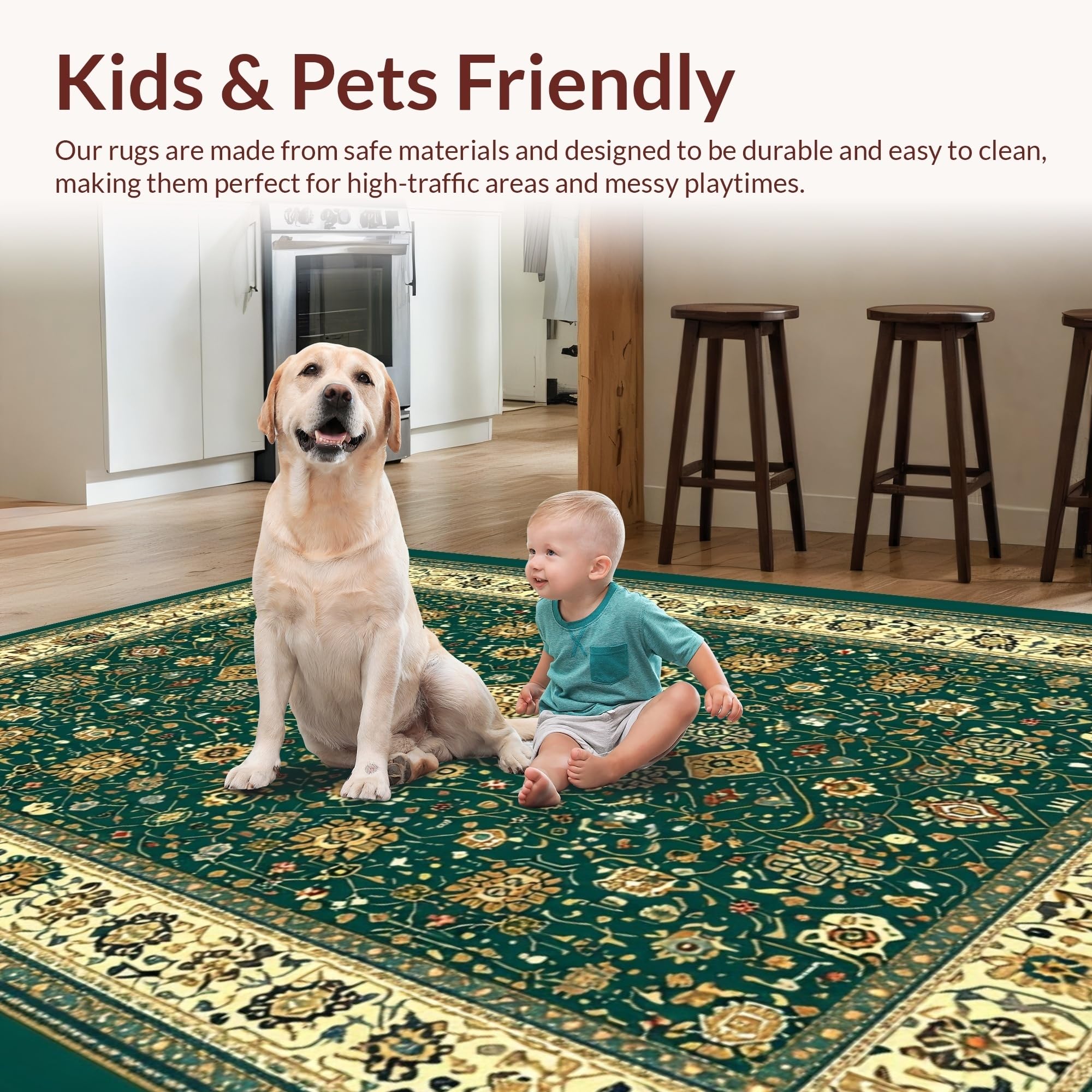 Ultra Soft Area Rug, Non Slip, Stain Resistant, Washable Area Rugs for Living Room, Bedroom, Muted Trellis Design in Soft Green(Green) Overview:
