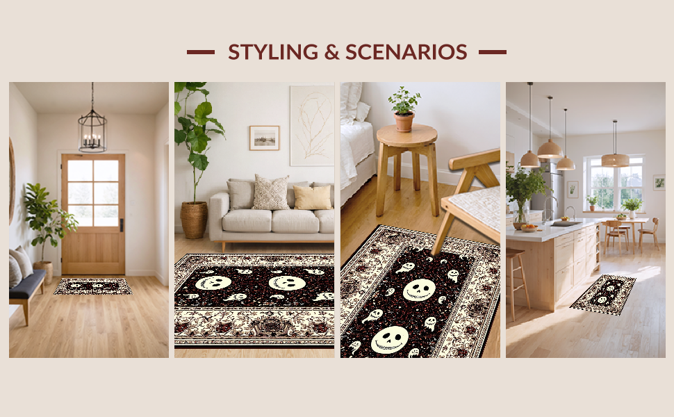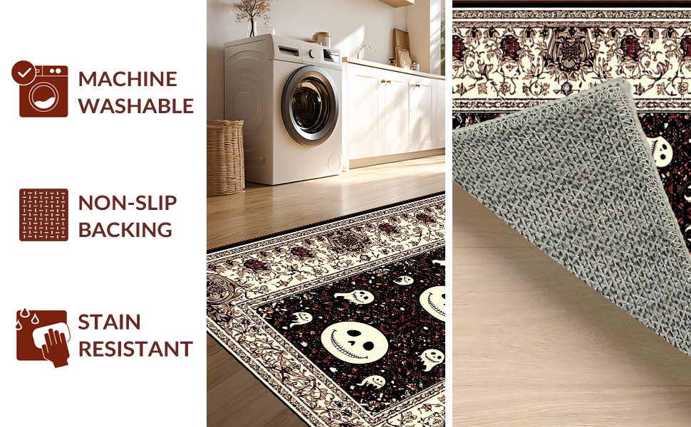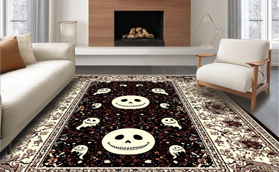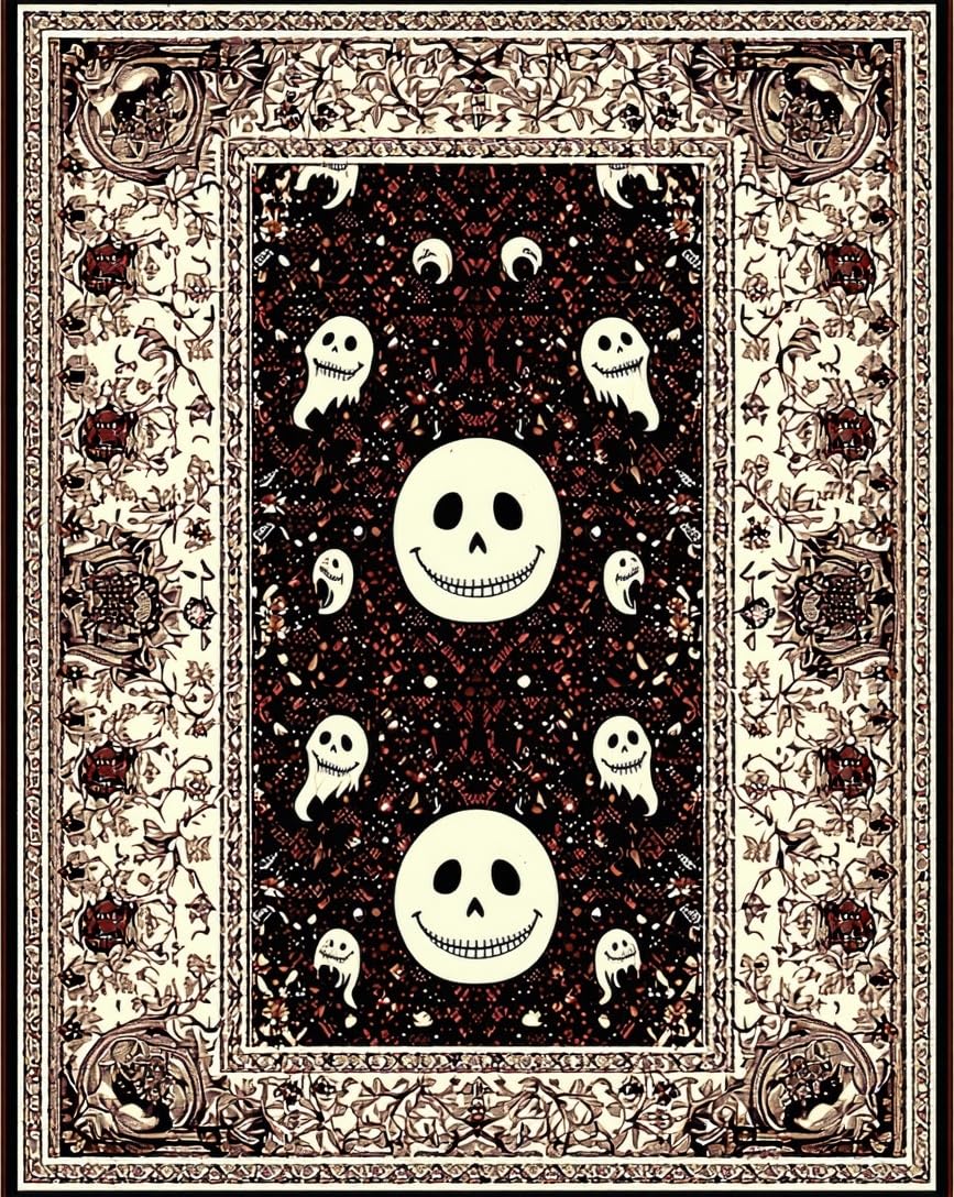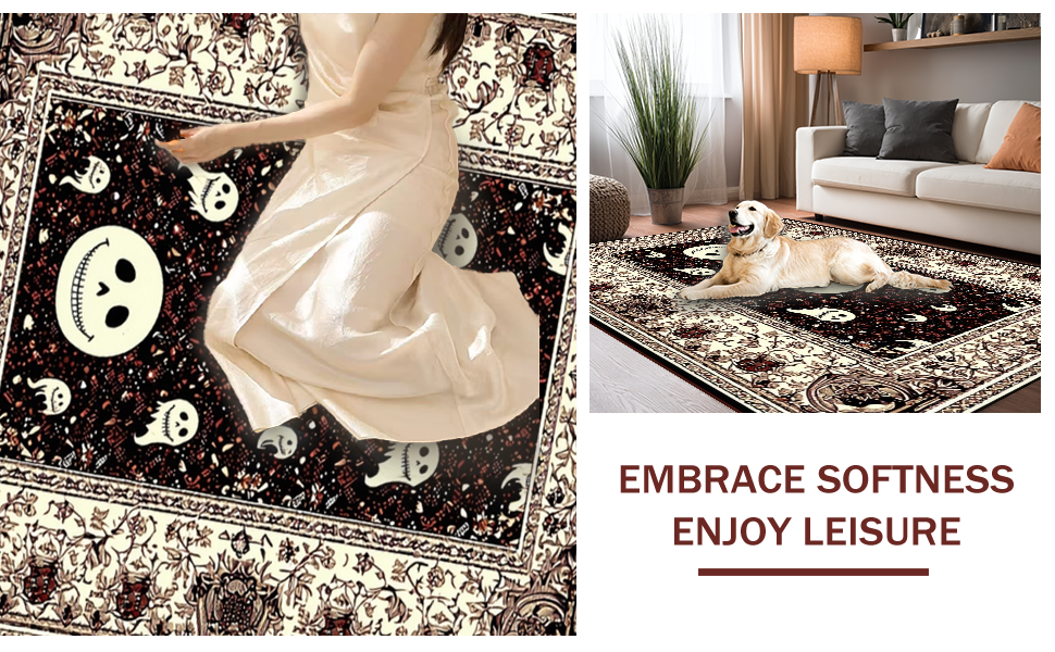 Ultra Soft Area Rug, Non Slip, Stain Resistant, Washable Area Rugs for Living Room, Bedroom, Mysterious Halloween Cheerful Motif(Black) Overview: