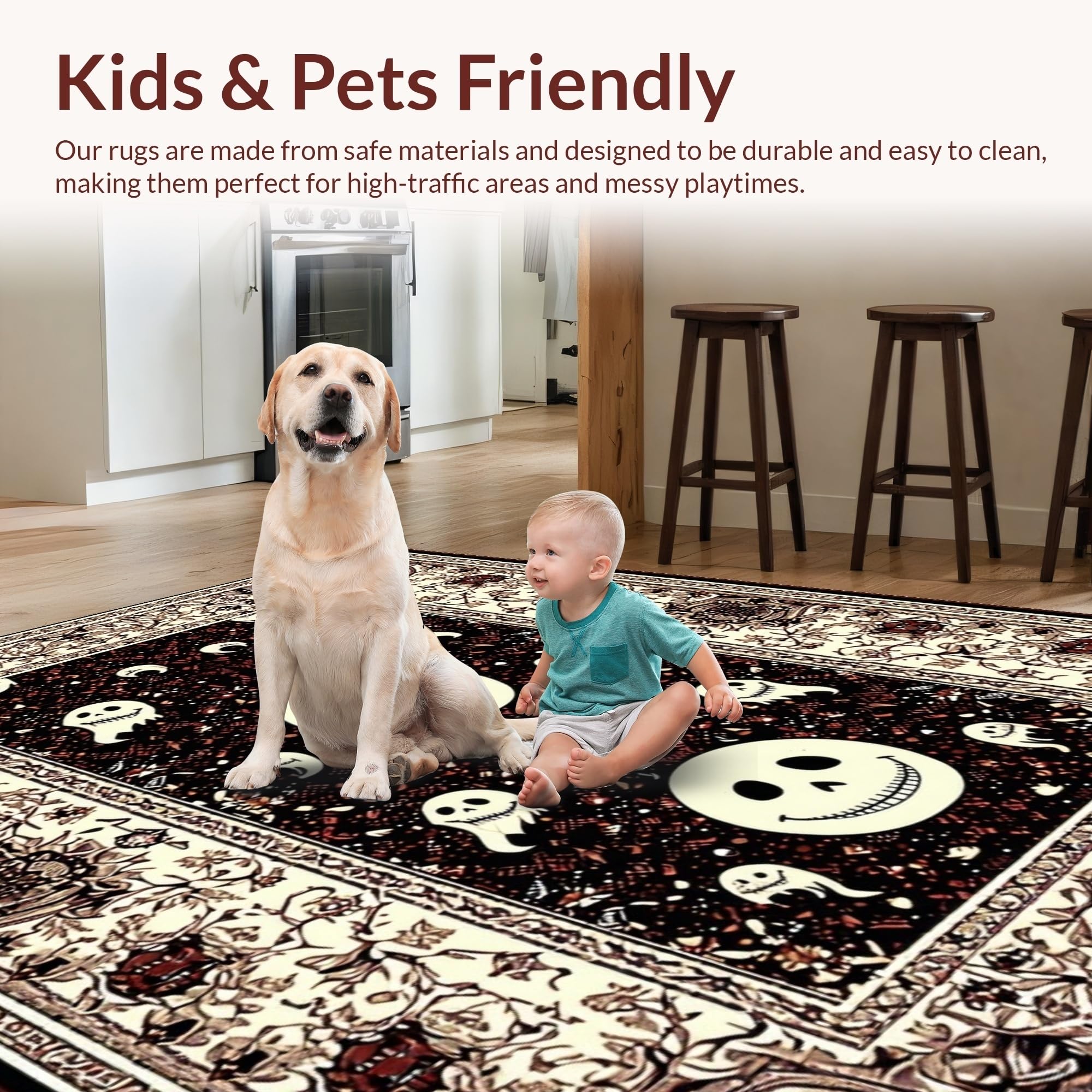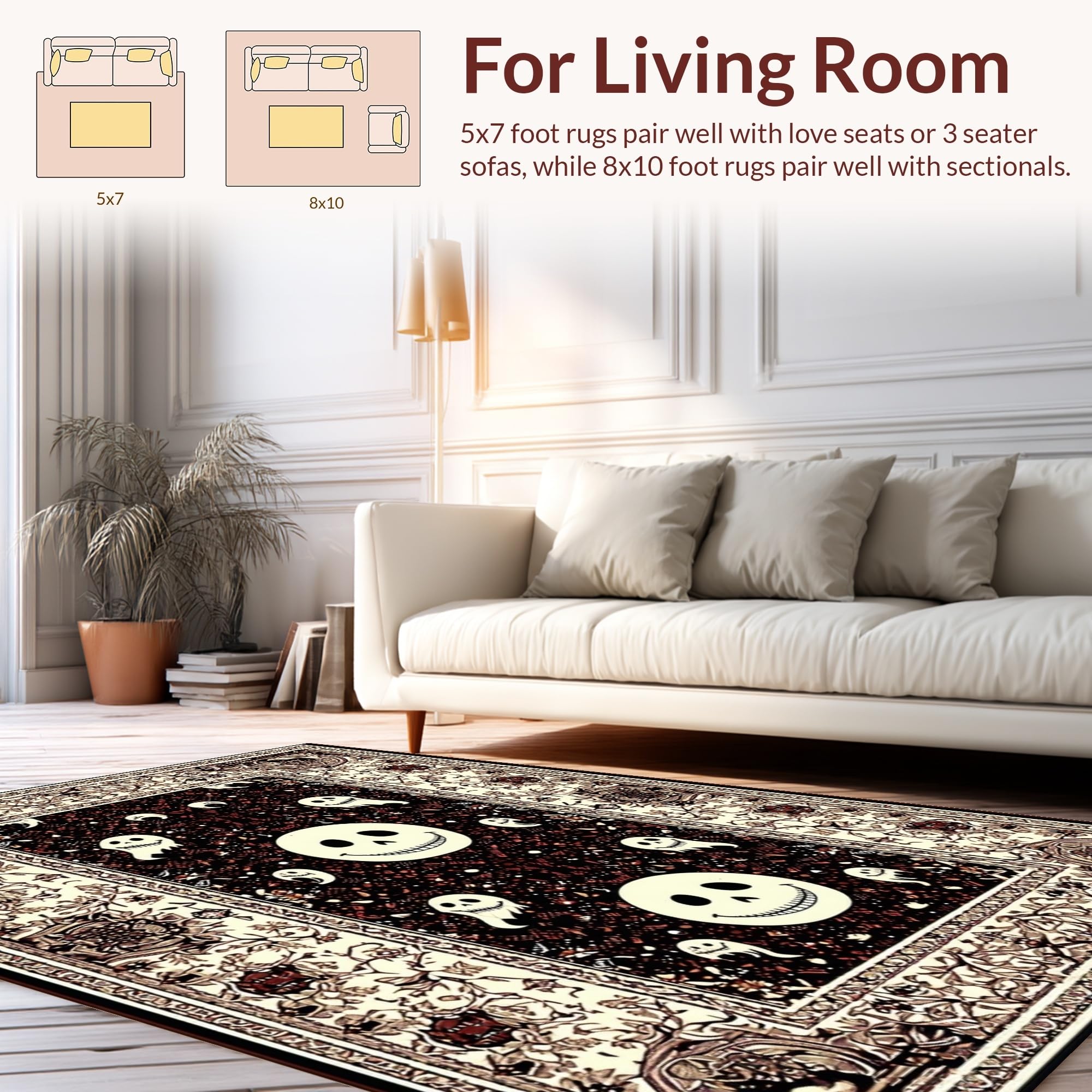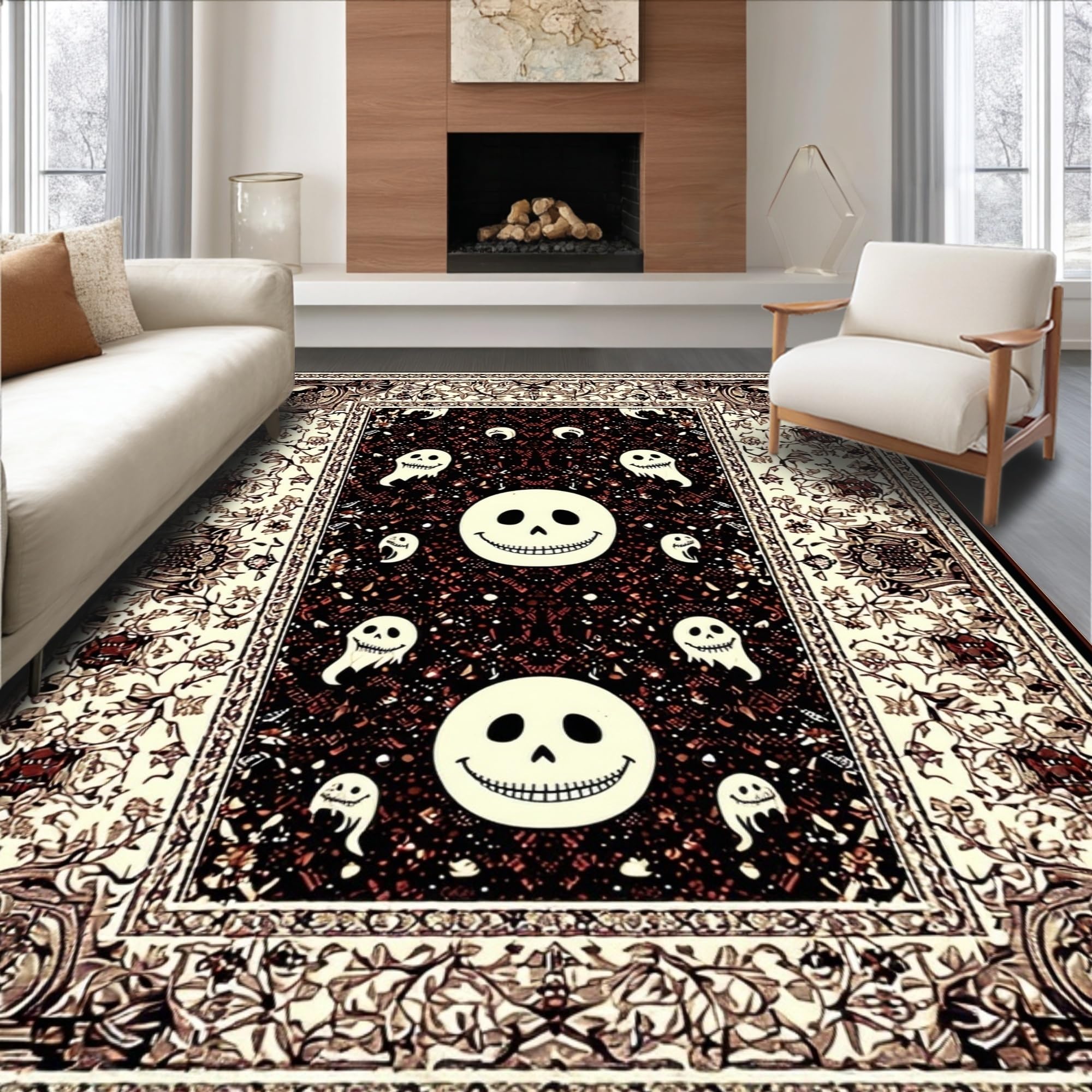 Ultra Soft Area Rug, Non Slip, Stain Resistant, Washable Area Rugs for Living Room, Bedroom, Mysterious Halloween Cheerful Motif(Black) Overview:
