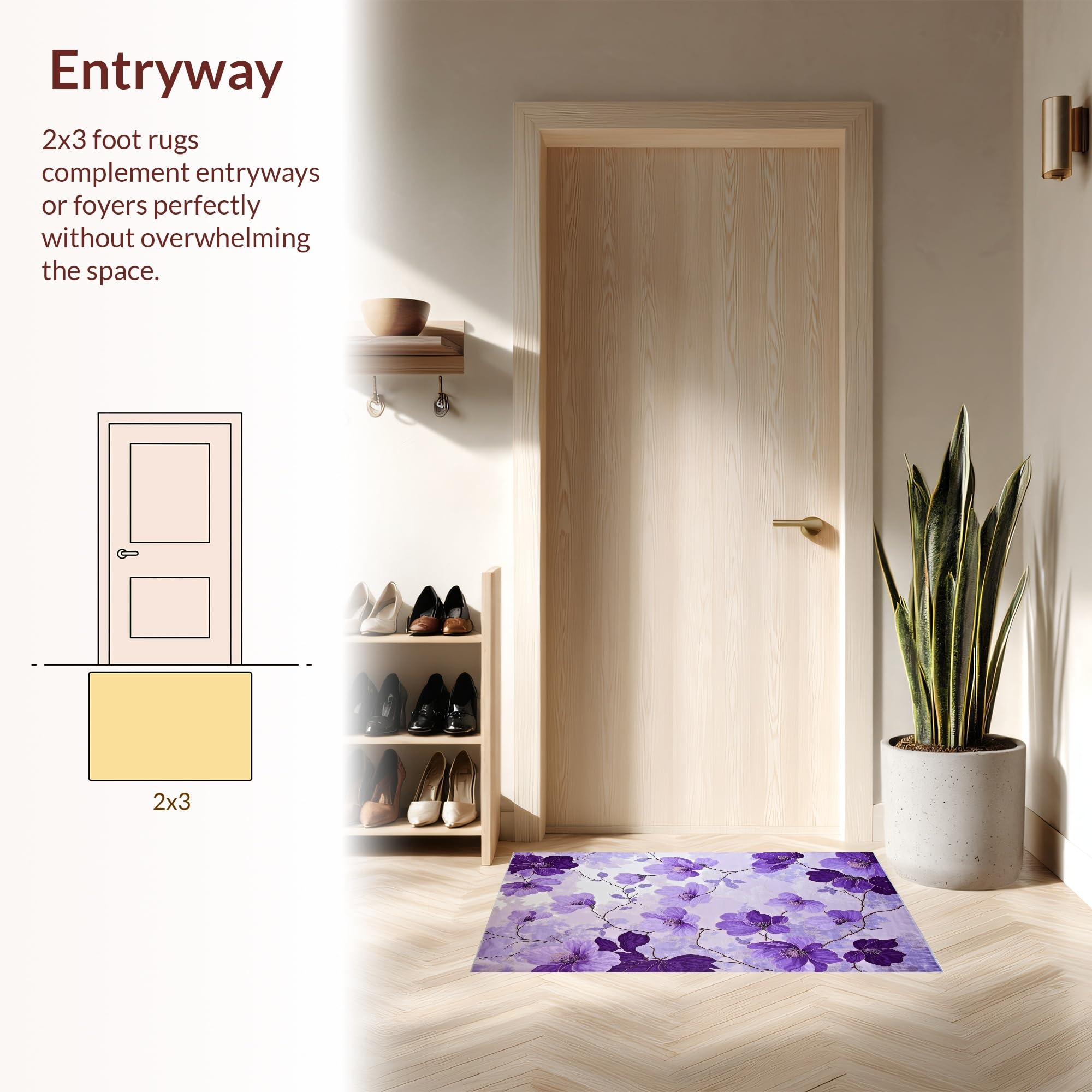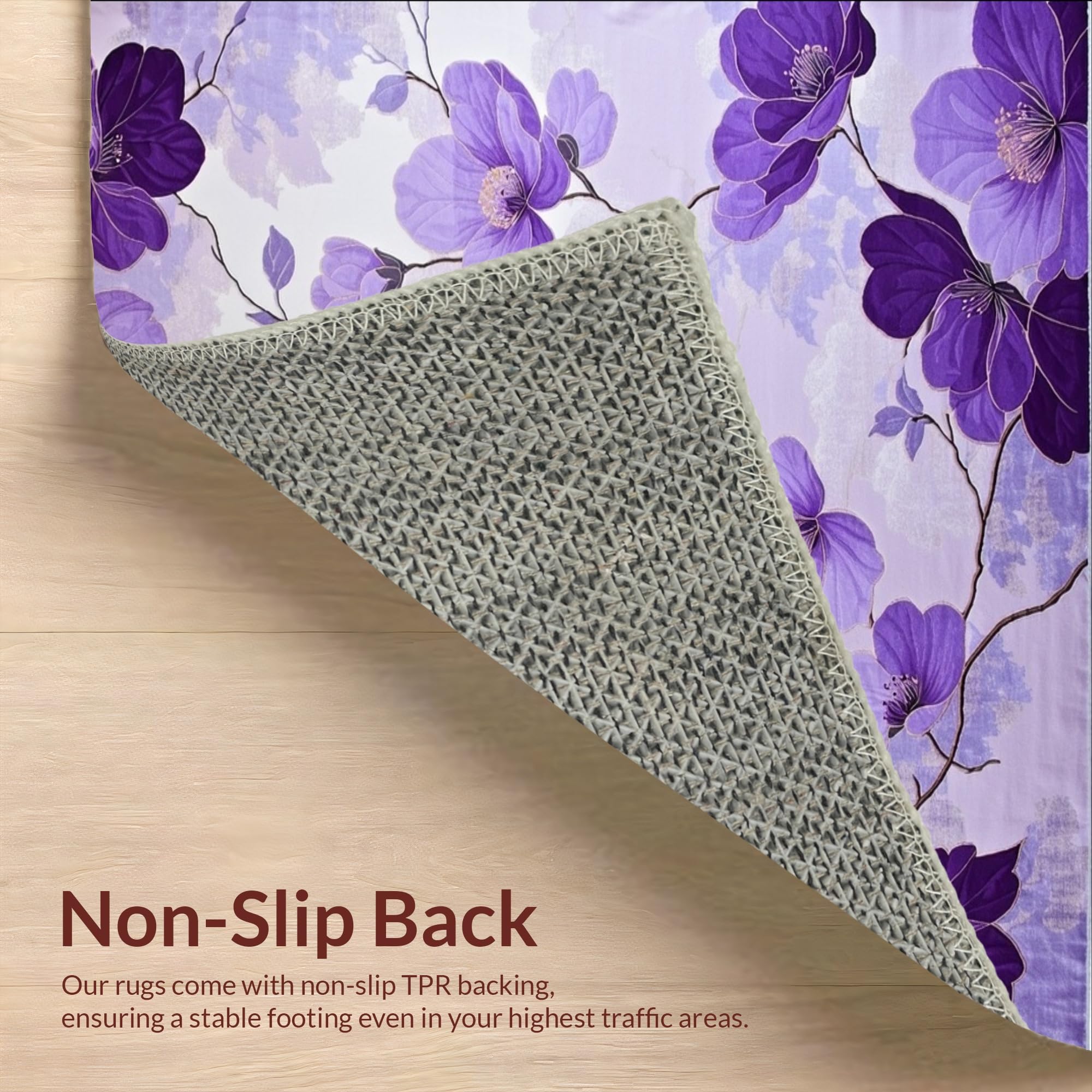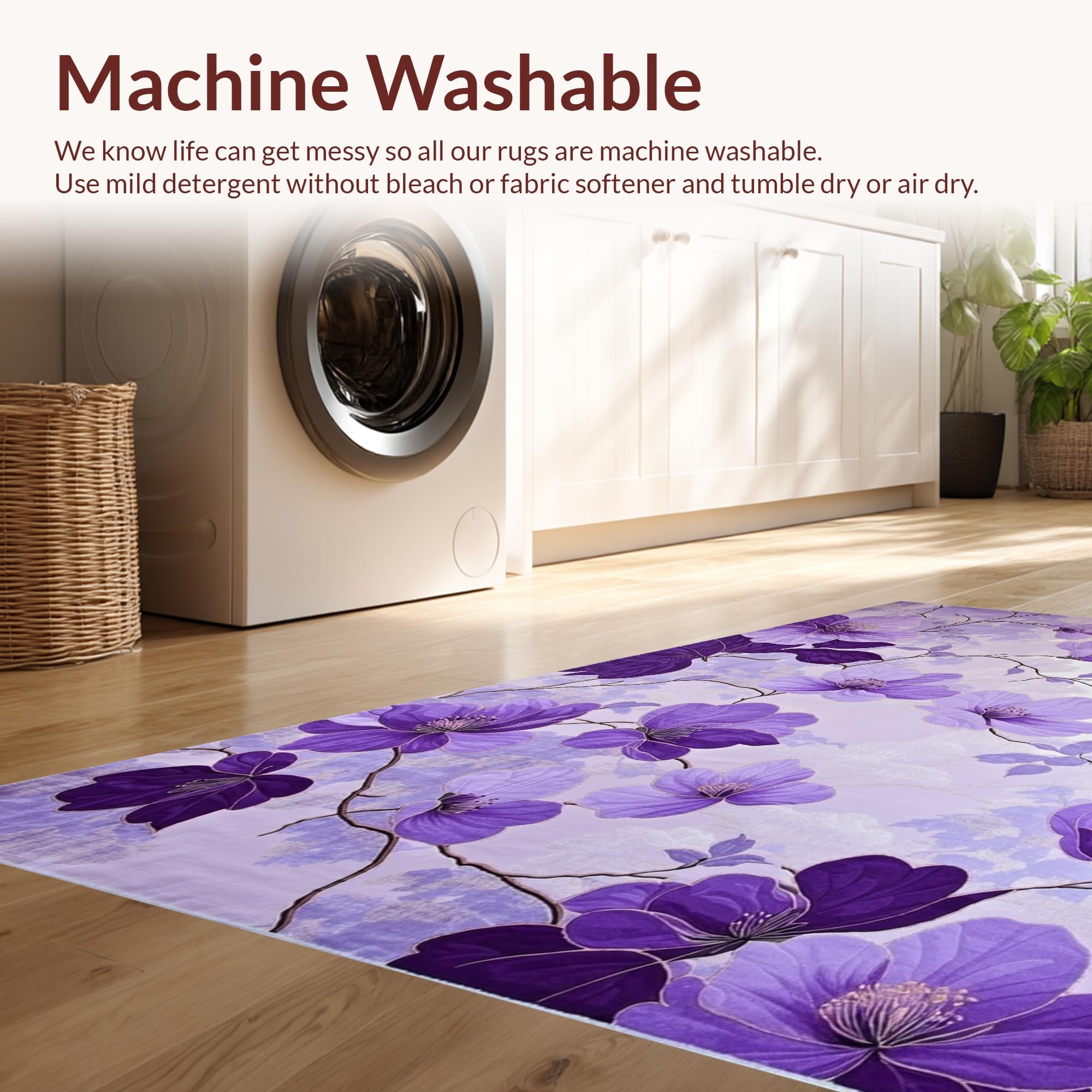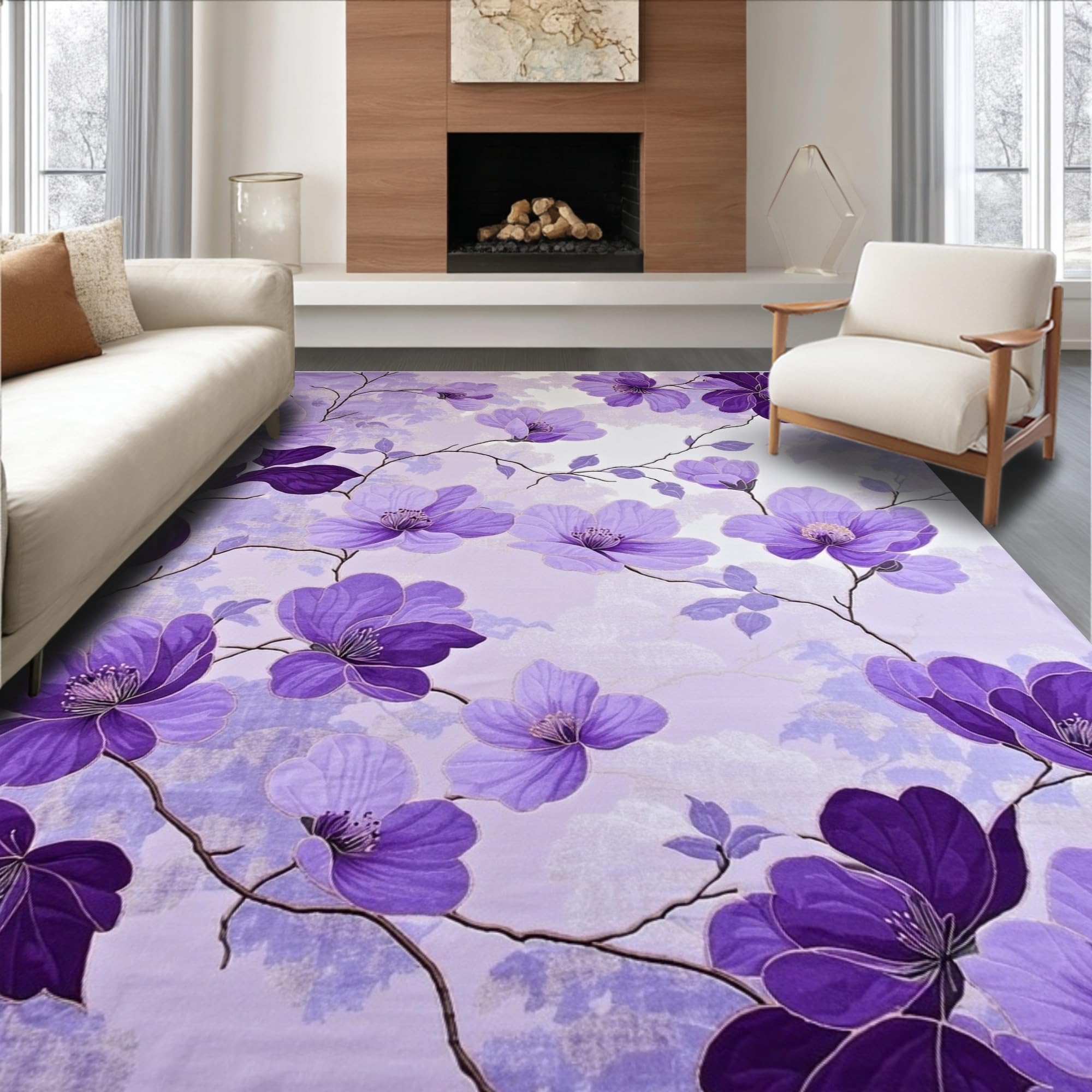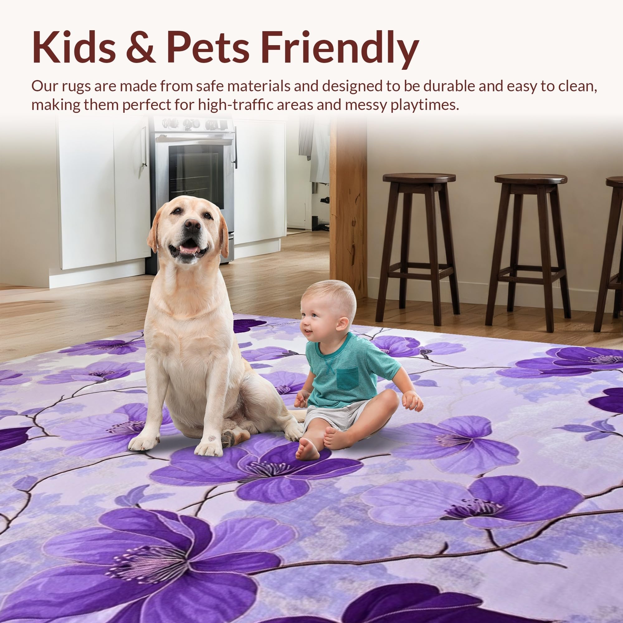 Ultra Soft Area Rug, Non Slip, Stain Resistant, Washable Area Rugs for Living Room, Bedroom, Mystic Bloom Accent with Petal Shapes(Lavender) Overview: