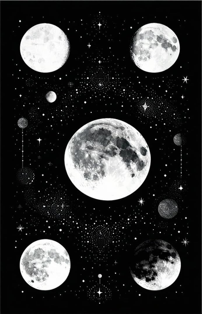 Mystic Moonbeam Black & White Lunar Phase Bath Mat Boho(White)