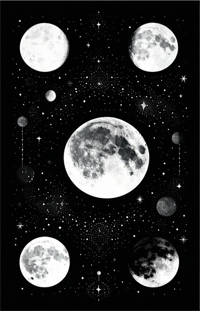 Mystic Moonbeam Black & Lunar Phase Bath Boho(White)