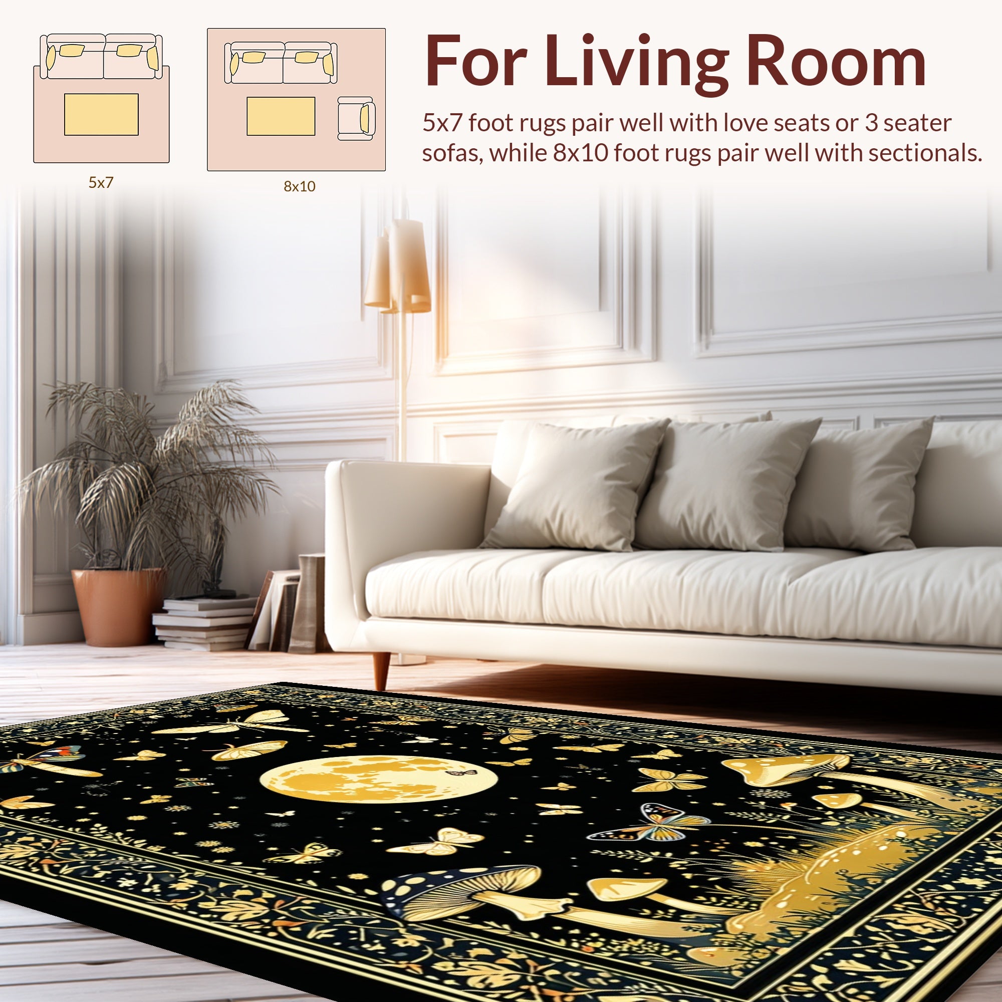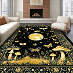 Flatwoven High Traffic Area Rug, Mystical Black Gold Motif, Non Slip, Stain Resistant, Washable Area Rugs for Living Room, Bedroom (Black) Overview: