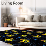 Ultra Soft Area Rug, Non Slip, Stain Resistant, Washable Area Rugs for Living Room, Bedroom, Mystical Cat Eyes Constellation Motif Glowing Accent(Yellow) Overview: