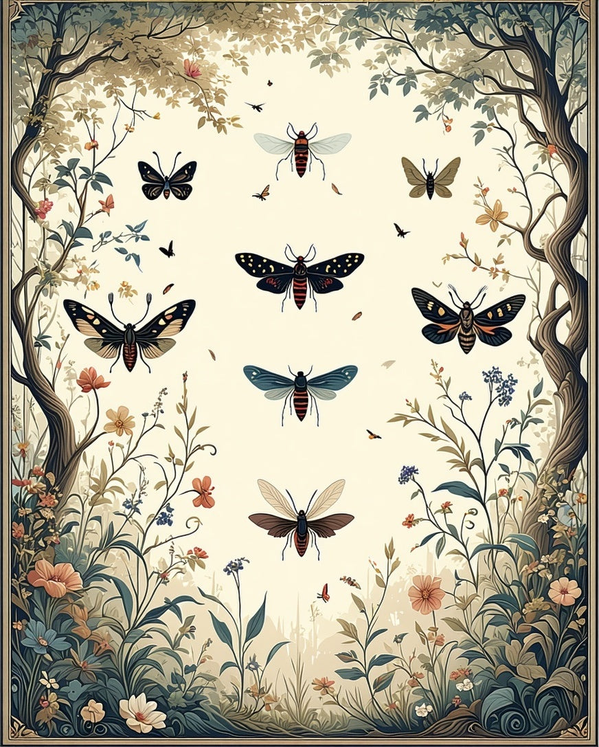 Mystical Moth Midnight Area with Botanical Fantasy Design Elements(Ivory)