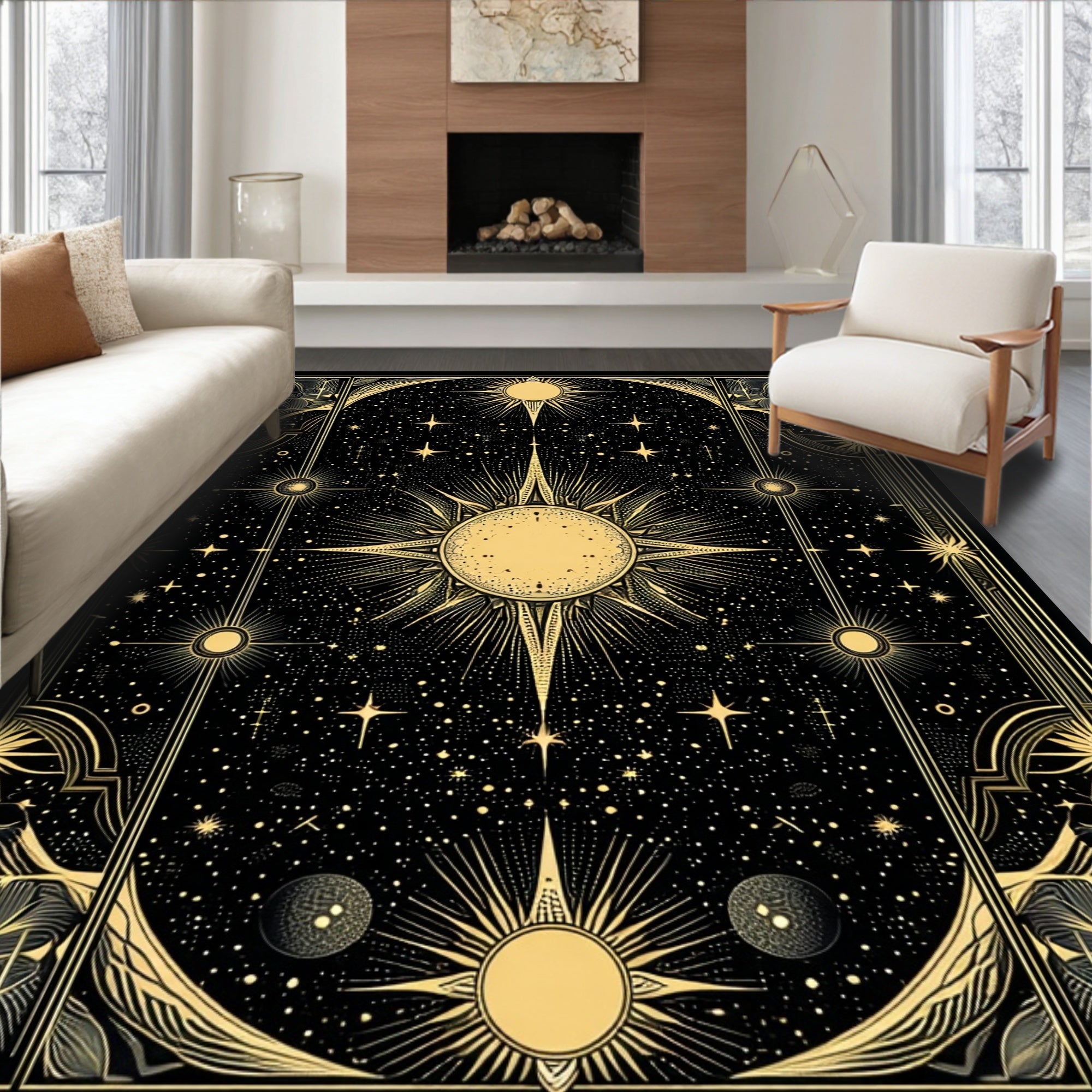 Flatwoven High Traffic Area Rug, Mystical Night Sky, Non Slip, Stain Resistant, Washable Area Rugs for Living Room, Bedroom (Gold) Overview: