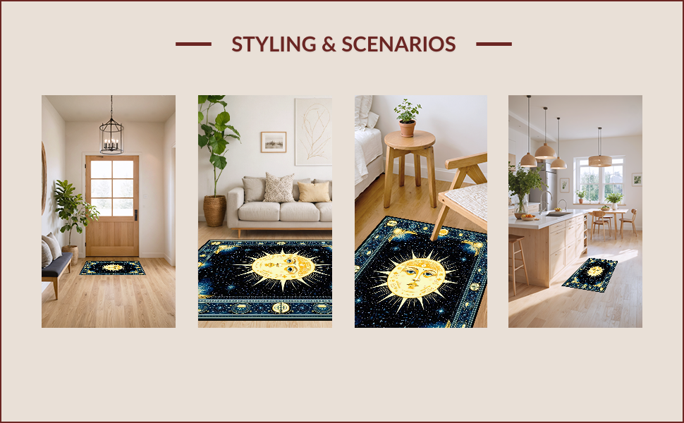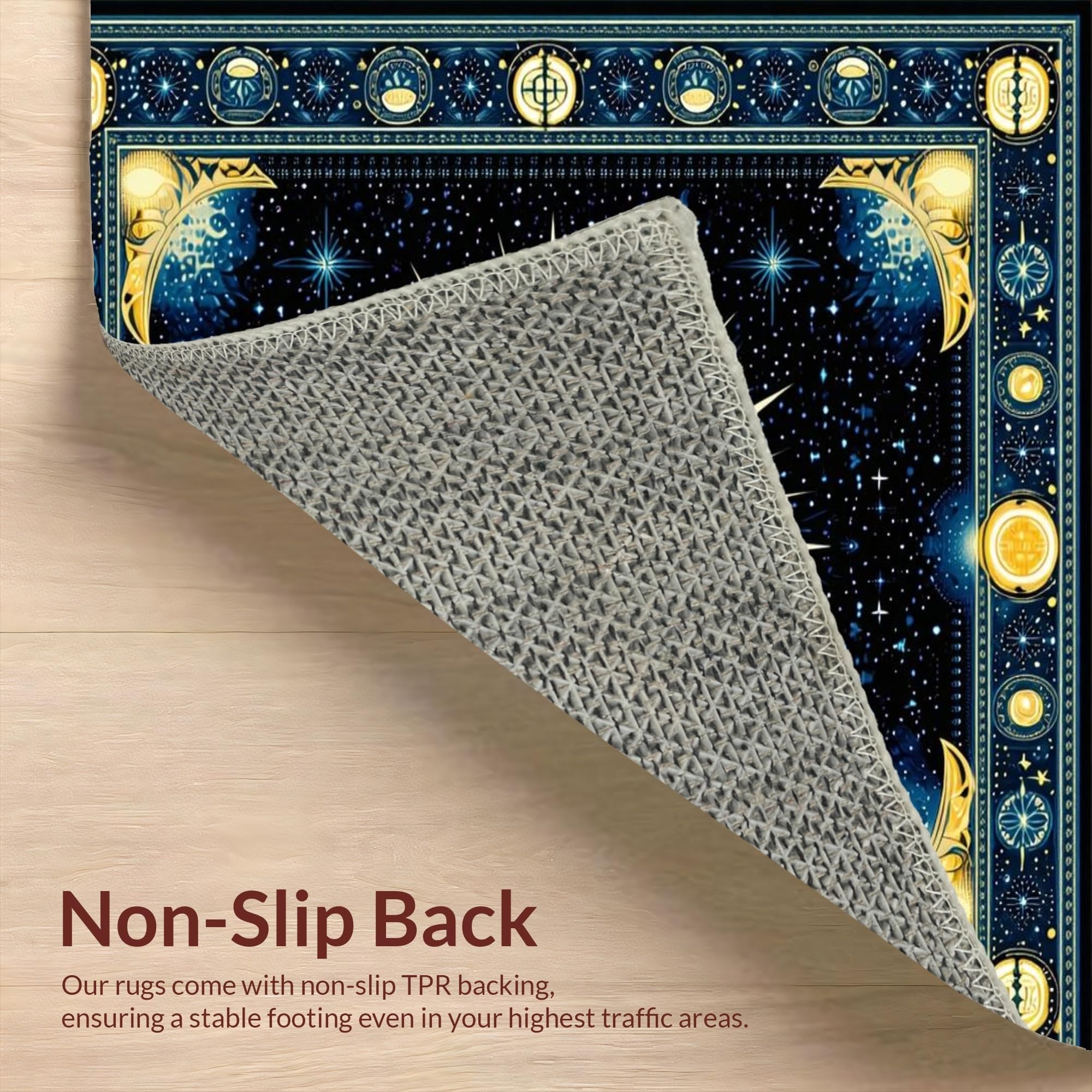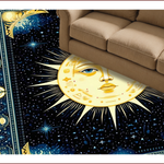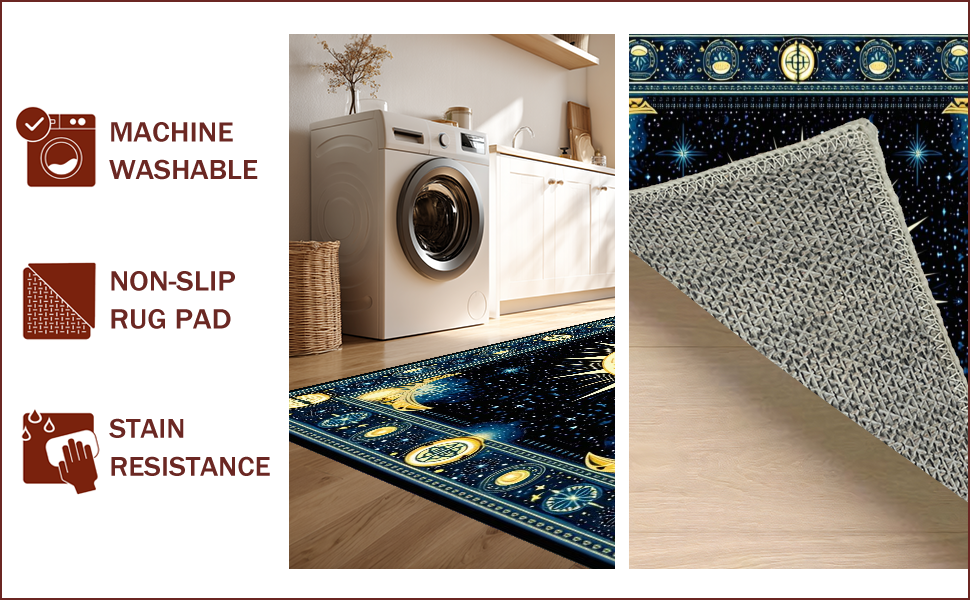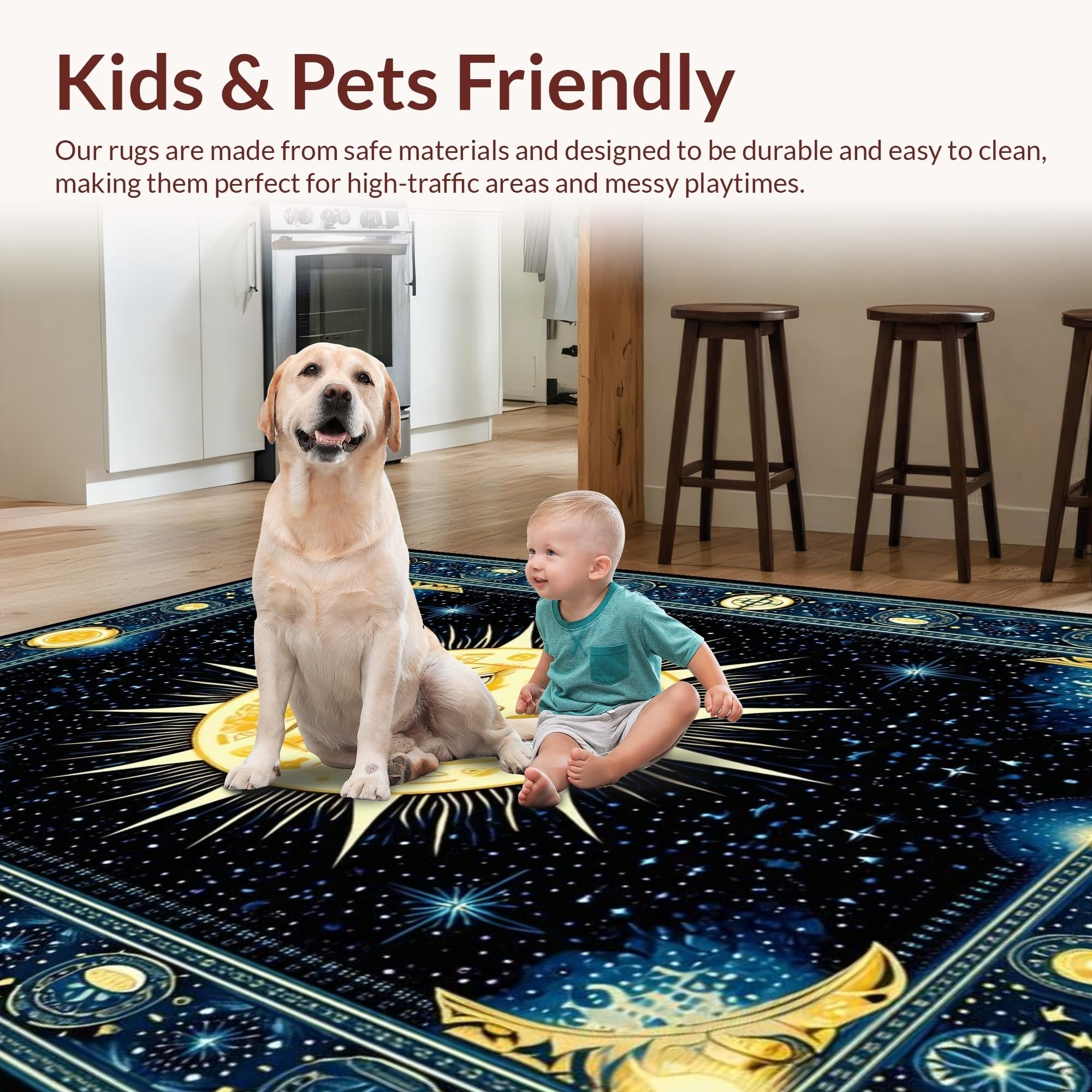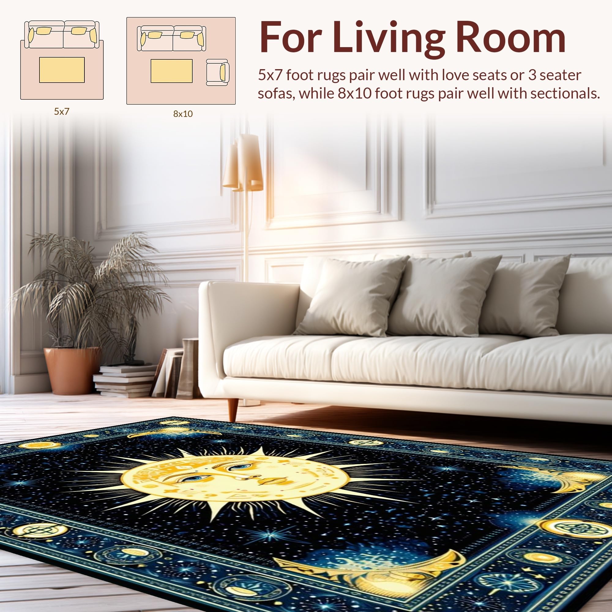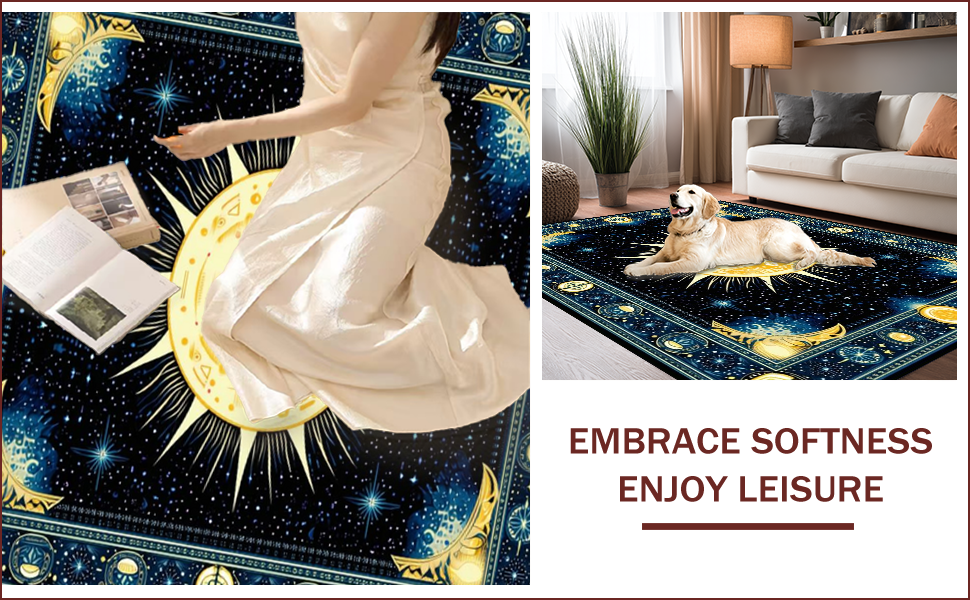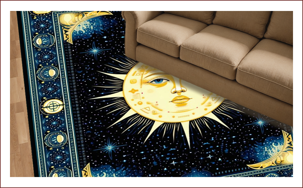 Ultra Soft Area Rug, Non Slip, Stain Resistant, Washable Area Rugs for Living Room, Bedroom, Mystical Solar Starry Motif(Gold) Overview: