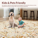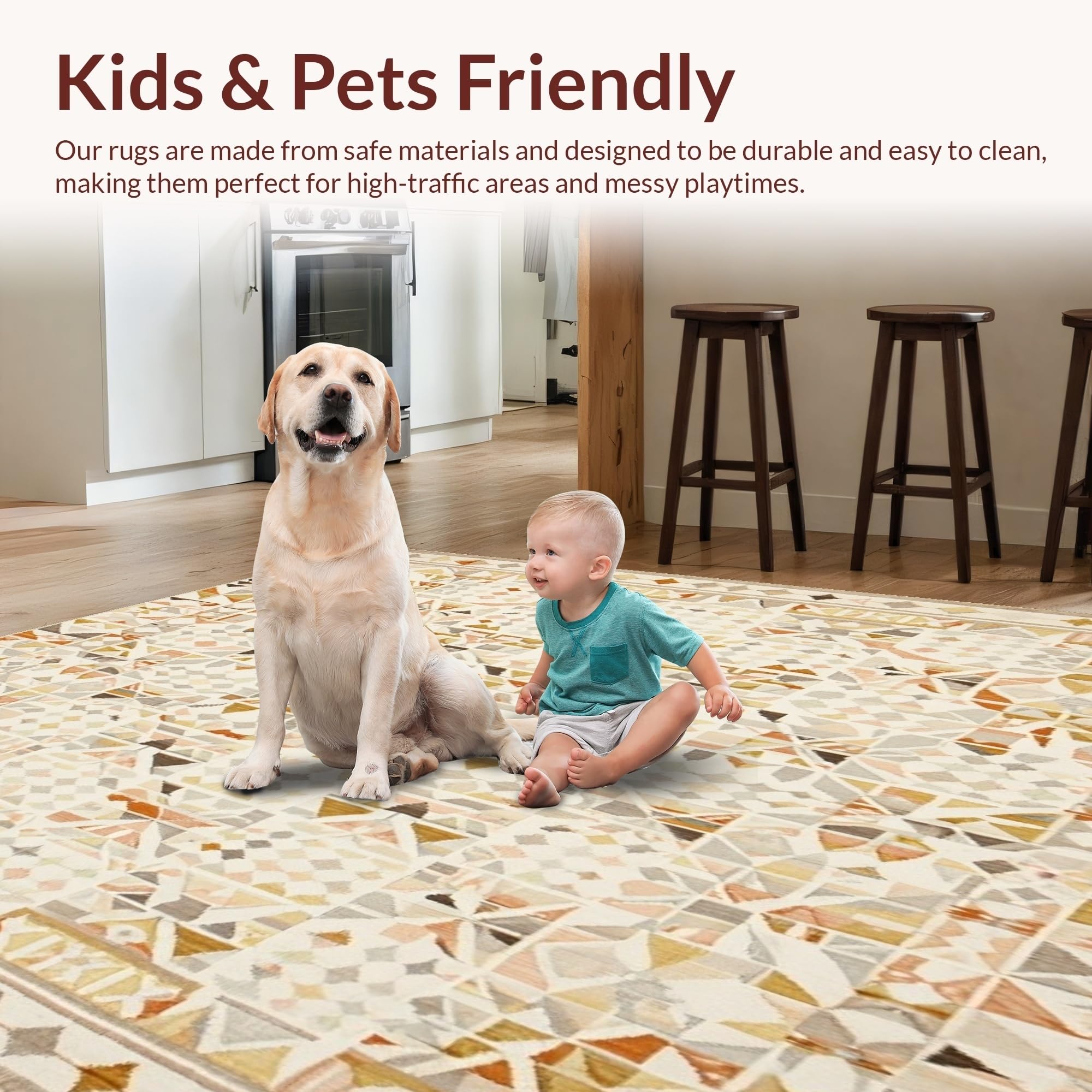 Ultra Soft Area Rug, Non Slip, Stain Resistant, Washable Area Rugs for Living Room, Bedroom, Natural Fiber Symmetrical Boho Geometric Shapes Warm Tones(Beige) Overview: