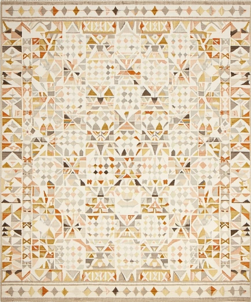 Natural Fiber Symmetrical Boho Geometric Shapes Warm Tones(Beige)