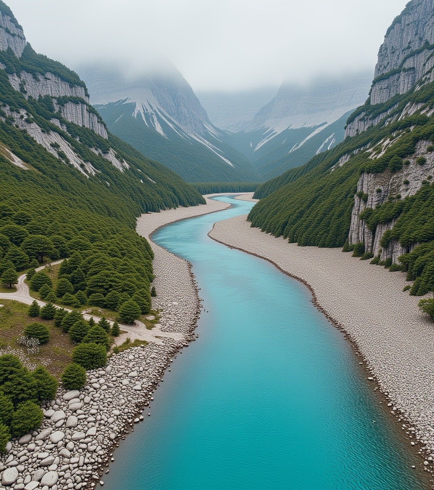 Natural Vista Mountain Stream Panoramic Horizon Perspective Illusion(Blue)