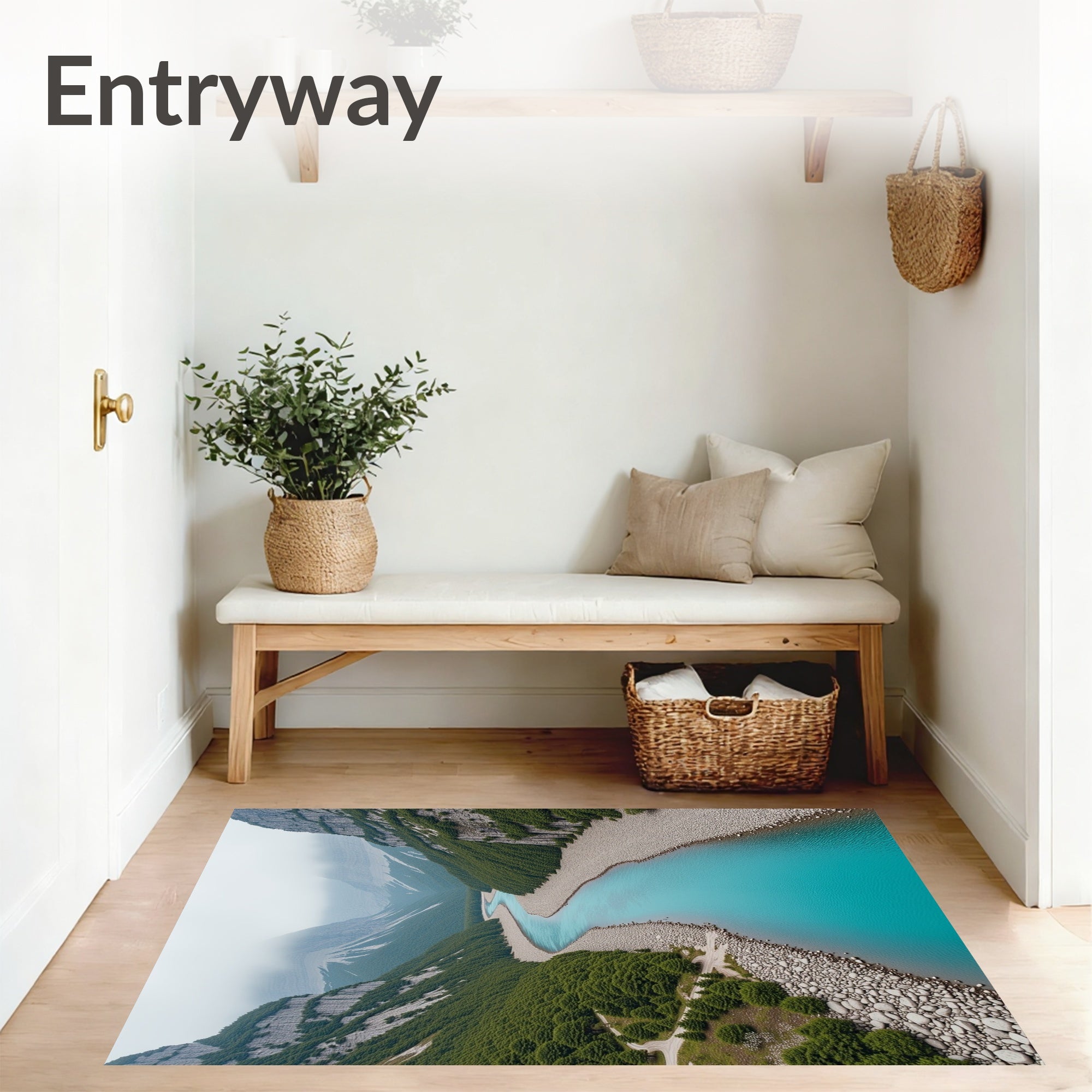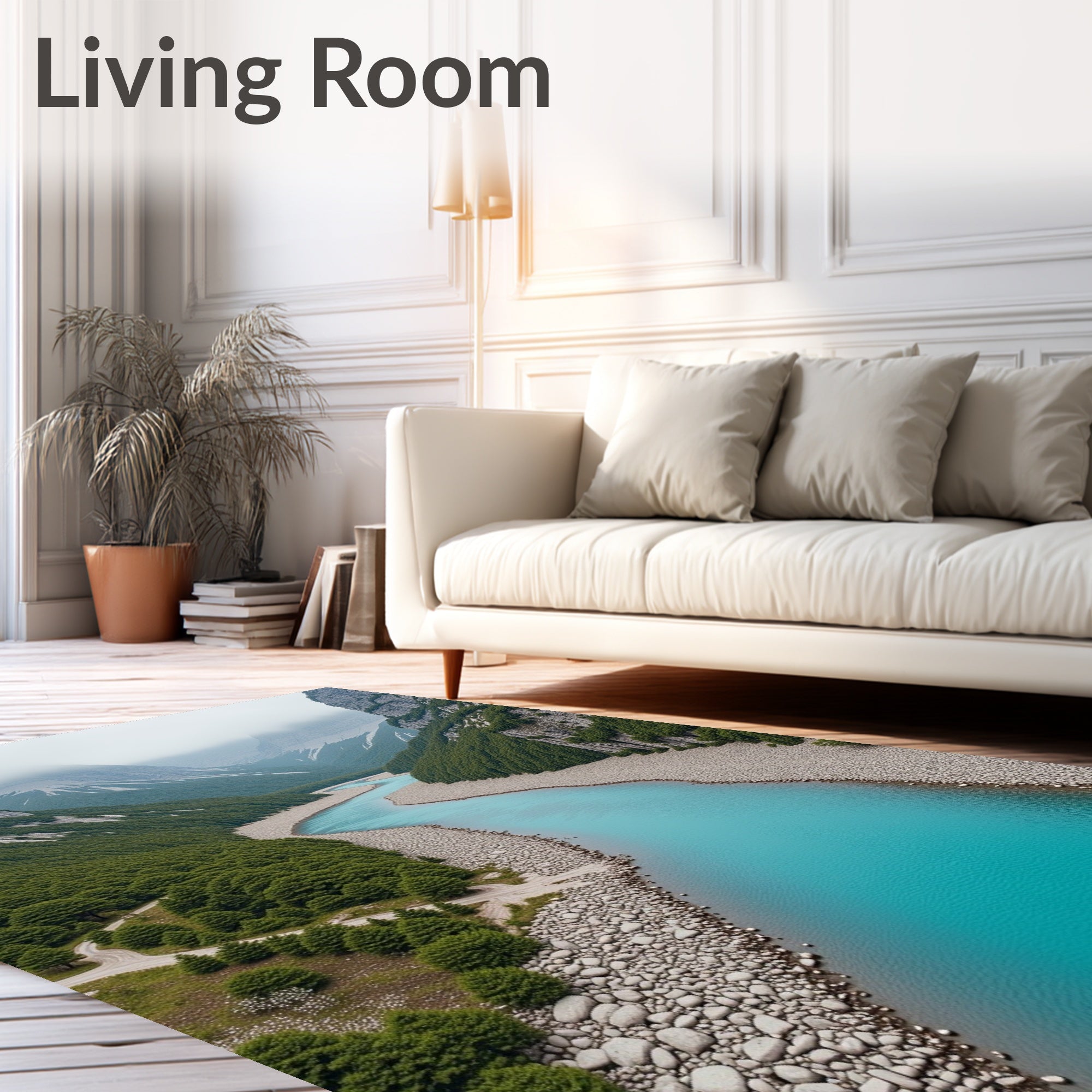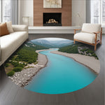 Ultra Soft Area Rug, Non Slip, Stain Resistant, Washable Area Rugs for Living Room, Bedroom, Natural Vista Mountain Stream Panoramic Horizon Perspective Illusion(Blue) Overview: