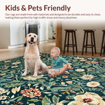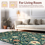 Ultra Soft Area Rug, Non Slip, Stain Resistant, Washable Area Rugs for Living Room, Bedroom, Nature-Inspired Boho Floral Elegance(Blue) Overview: