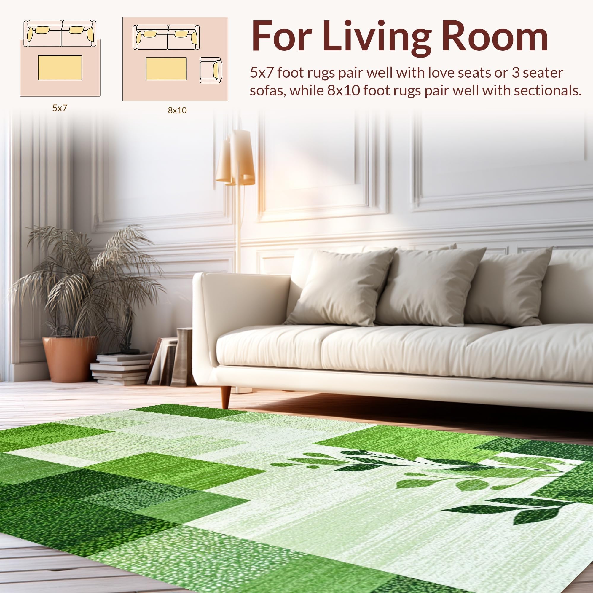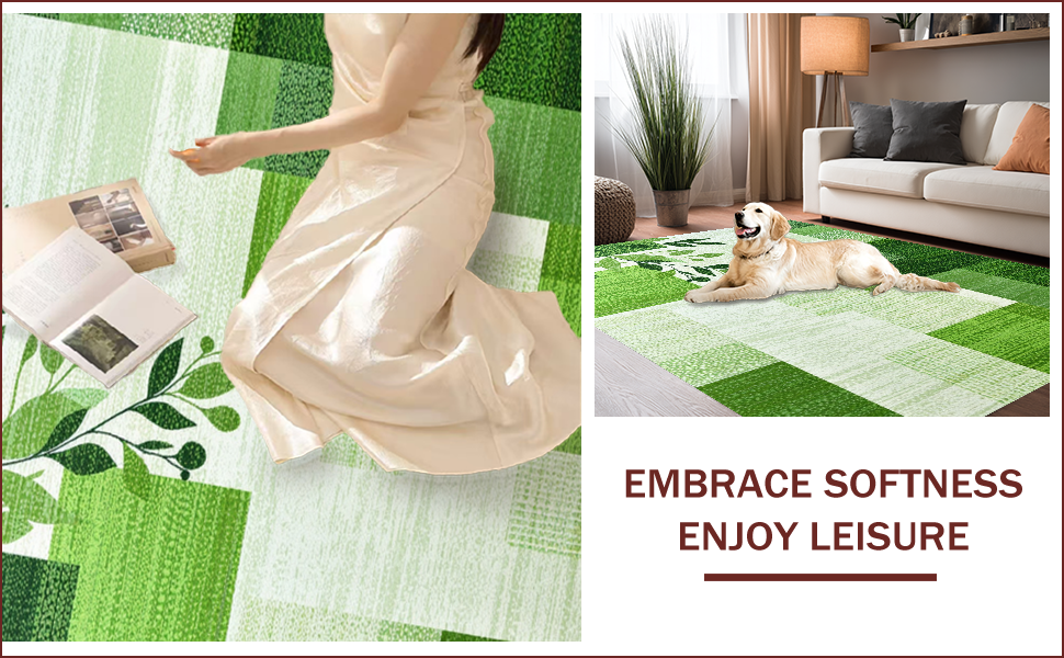 Ultra Soft Area Rug, Non Slip, Stain Resistant, Washable Area Rugs for Living Room, Bedroom, Nature-Inspired Shaggy Circle Aesthetic(Green) Overview: