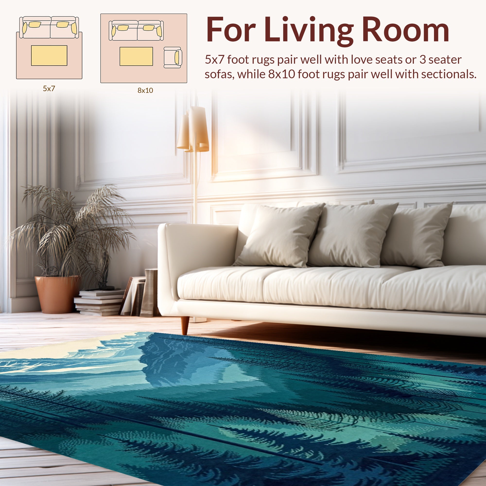 Flatwoven High Traffic Area Rug, Nature Inspired Teal Forest Theme, Non Slip, Stain Resistant, Washable Area Rugs for Living Room, Bedroom (Blue) Overview: