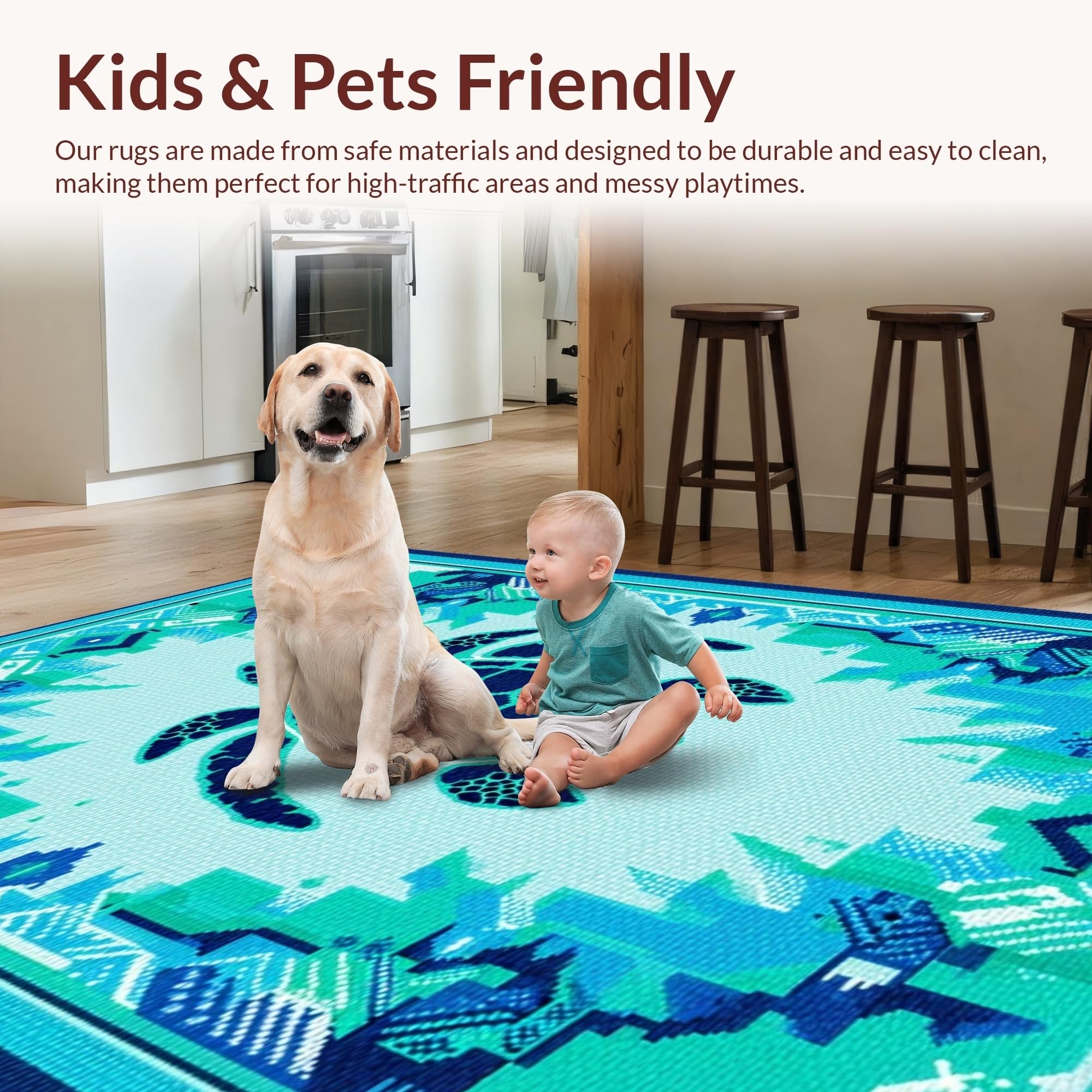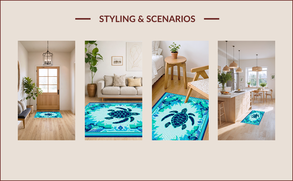 Ultra Soft Area Rug, Non Slip, Stain Resistant, Washable Area Rugs for Living Room, Bedroom, Nautical Charm Sea Turtle Aesthetic(Blue) Overview: