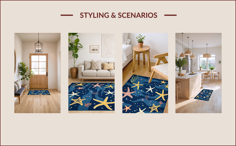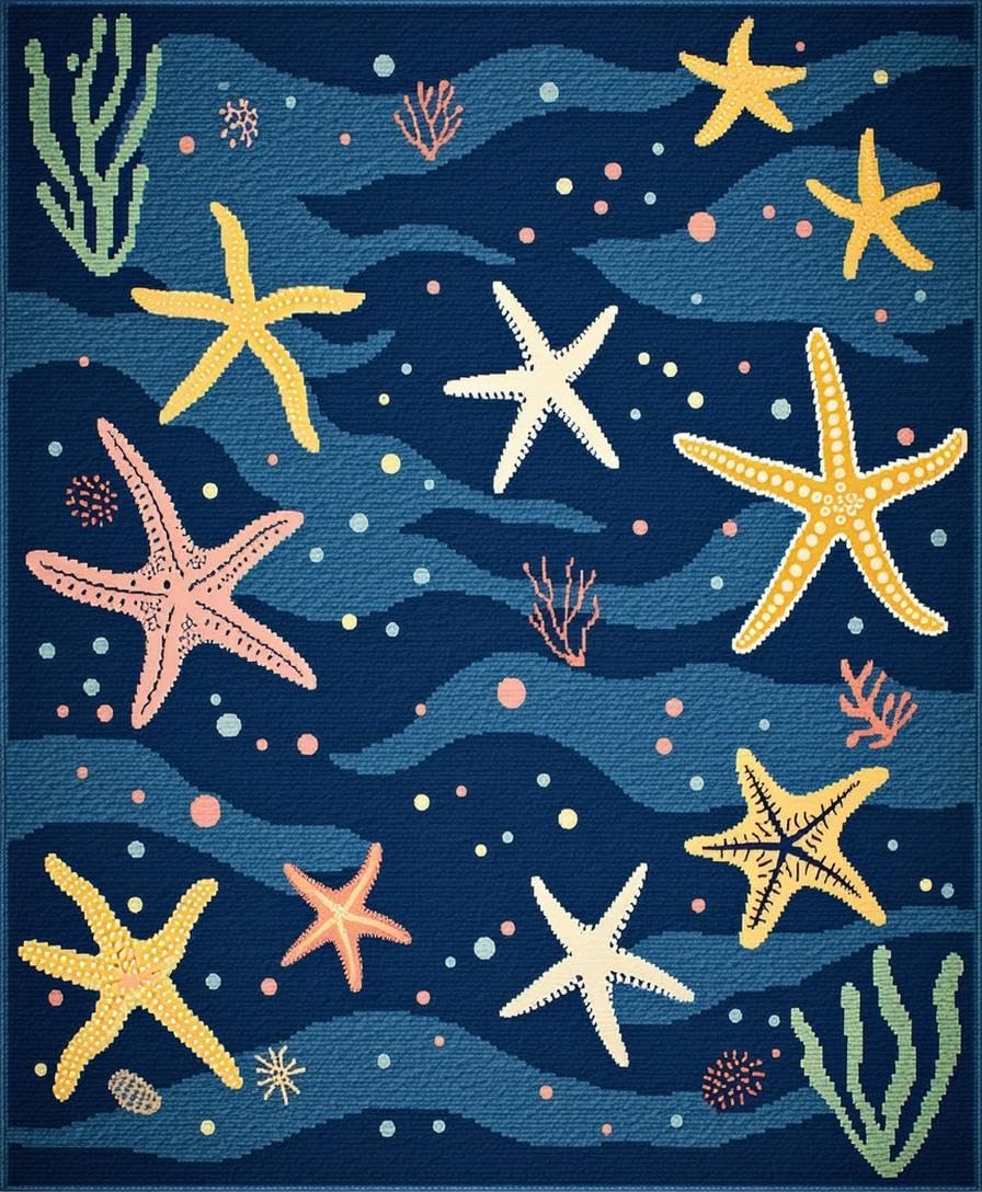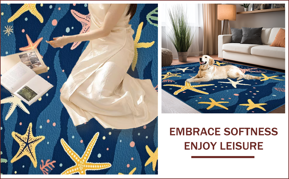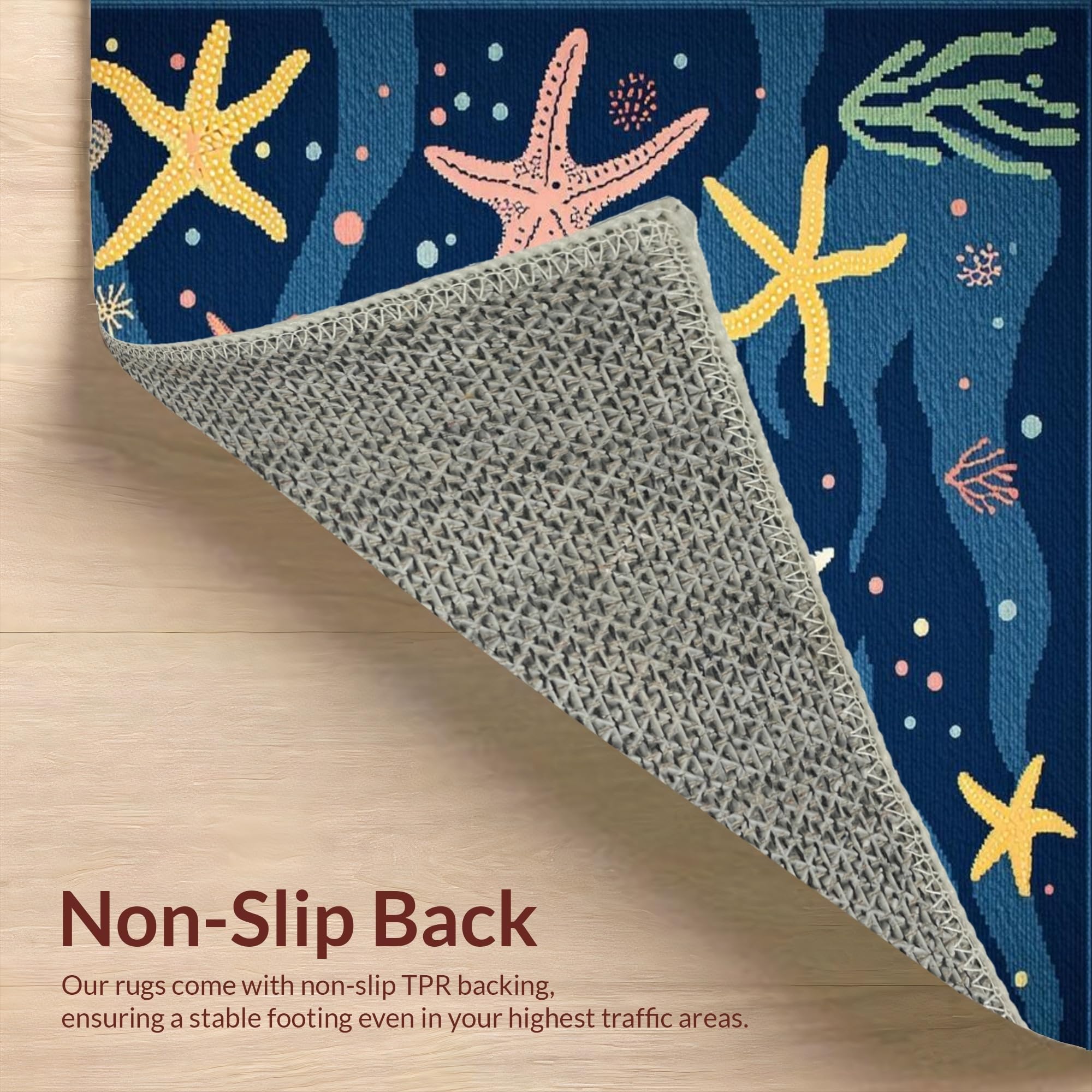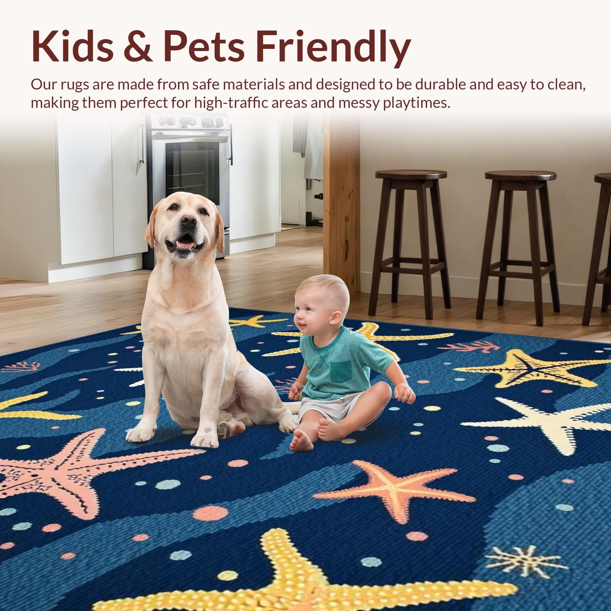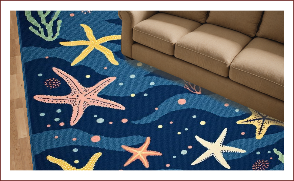 Ultra Soft Area Rug, Non Slip, Stain Resistant, Washable Area Rugs for Living Room, Bedroom, Nautical Inspired Vibrant Ocean Palette(Blue) Overview: