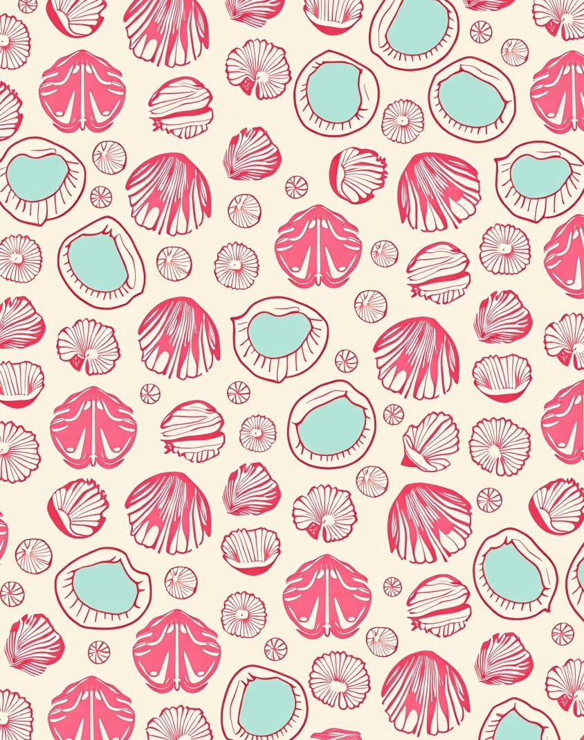 Nautical Seashell Mosaic with Starfish Motifs(Pink)