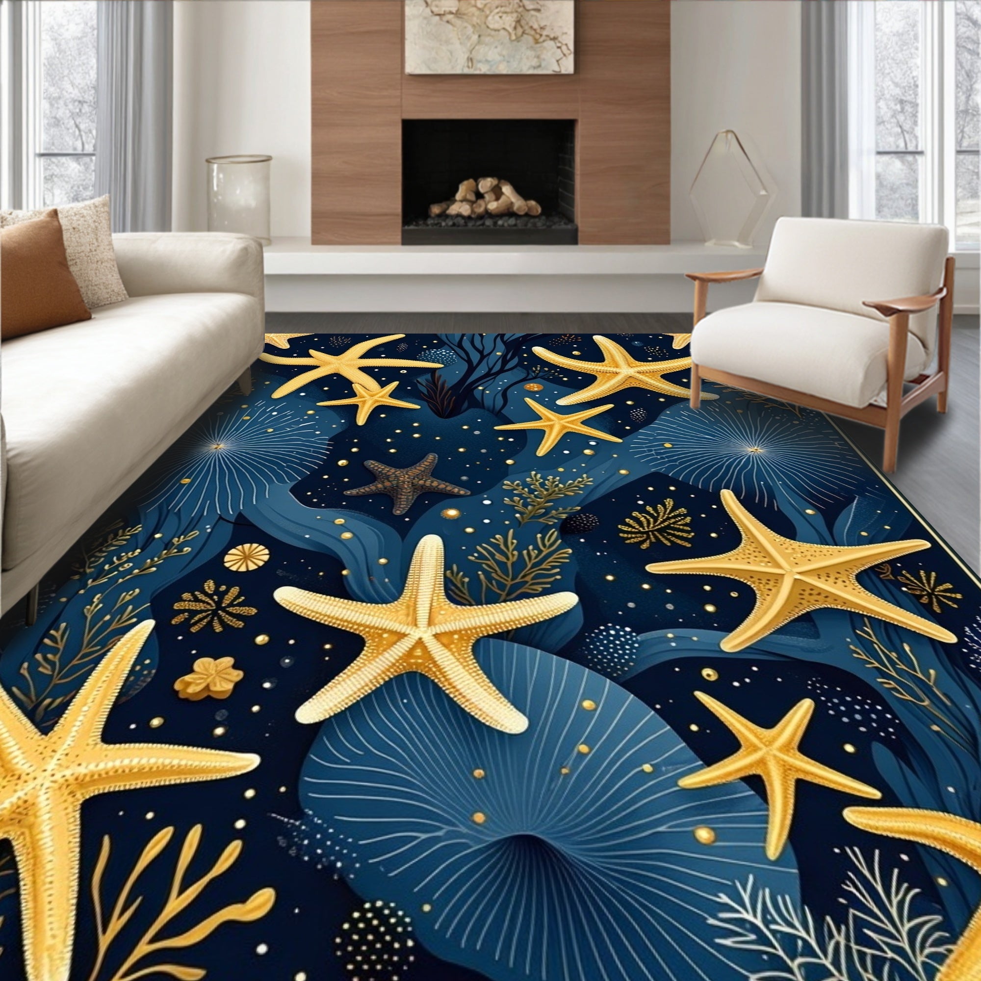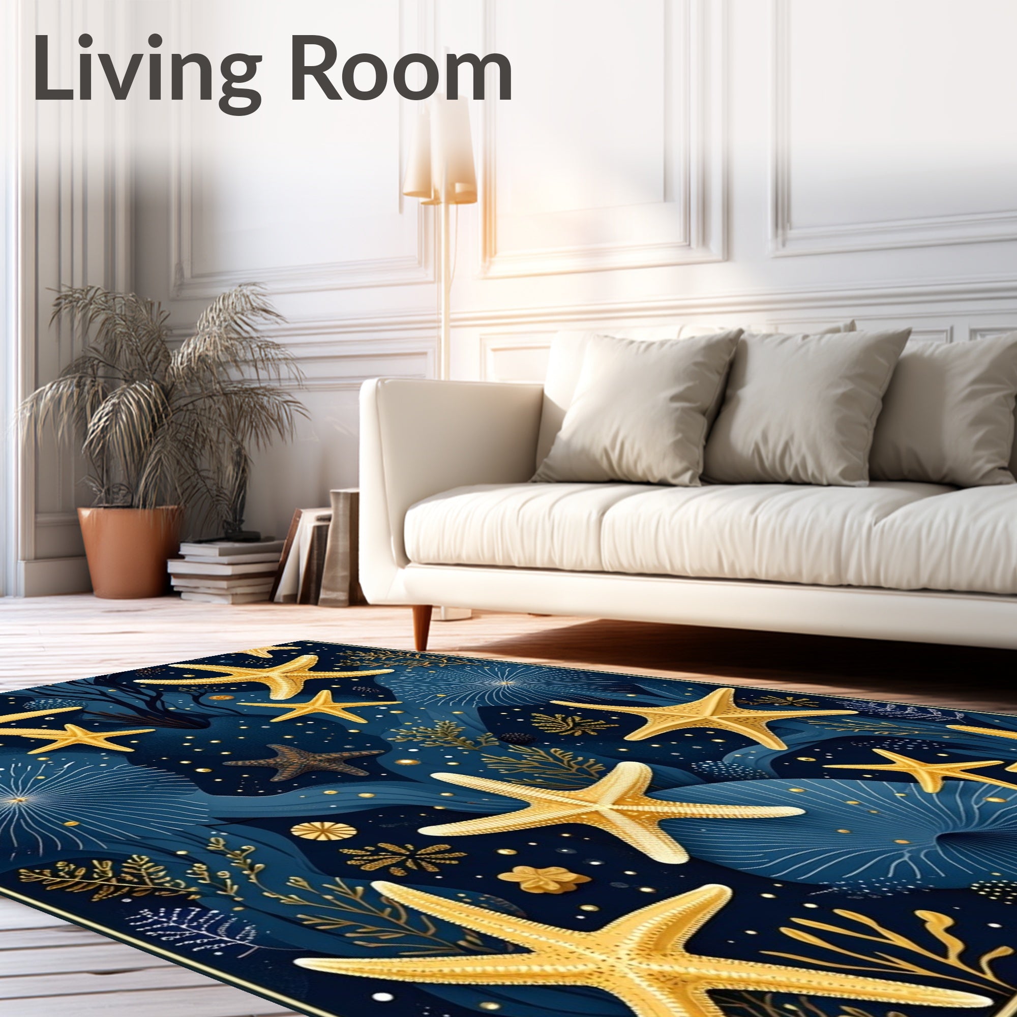 Flatwoven High Traffic Area Rug, Nautical Starfish, Non Slip, Stain Resistant, Washable Area Rugs for Living Room, Bedroom (Blue) Overview: