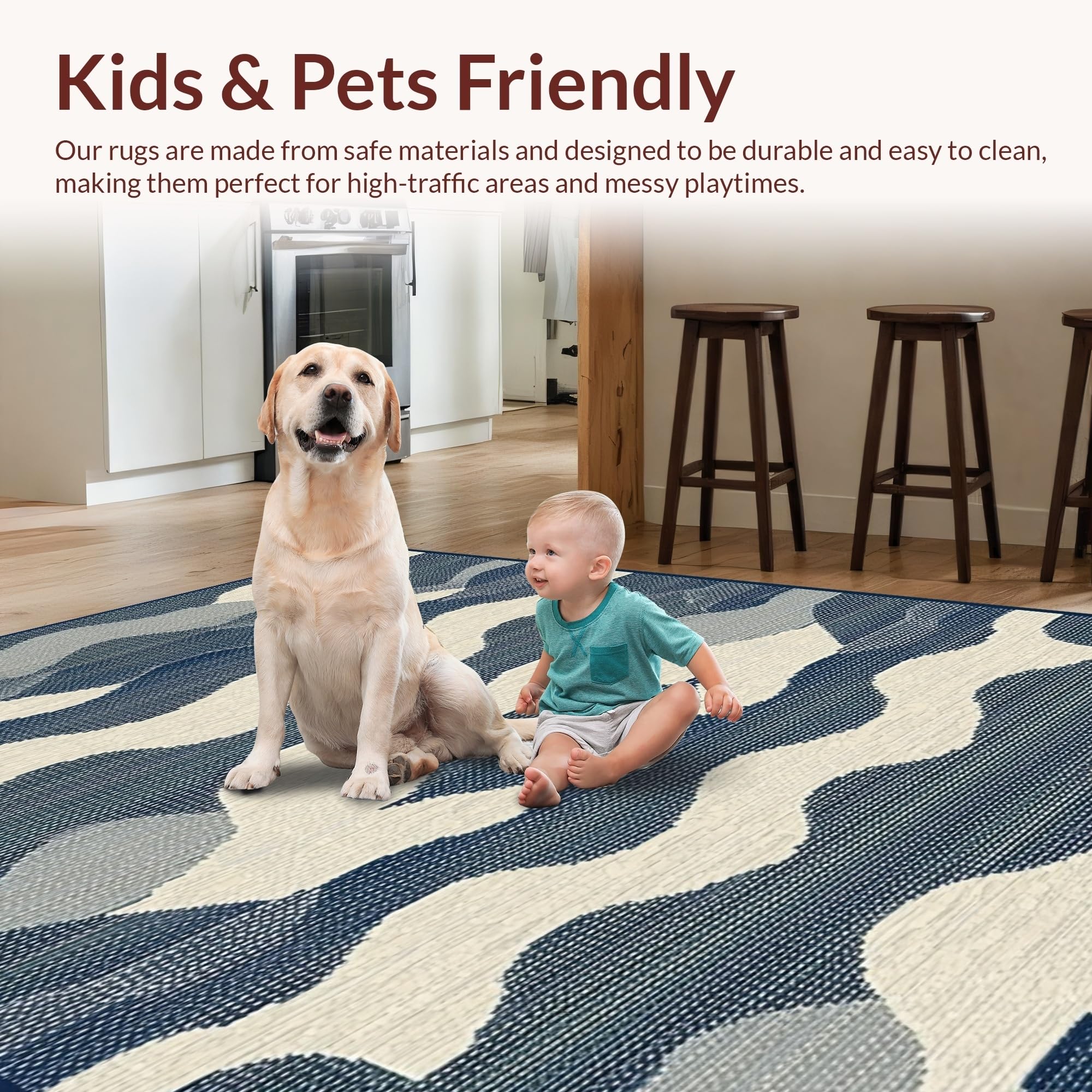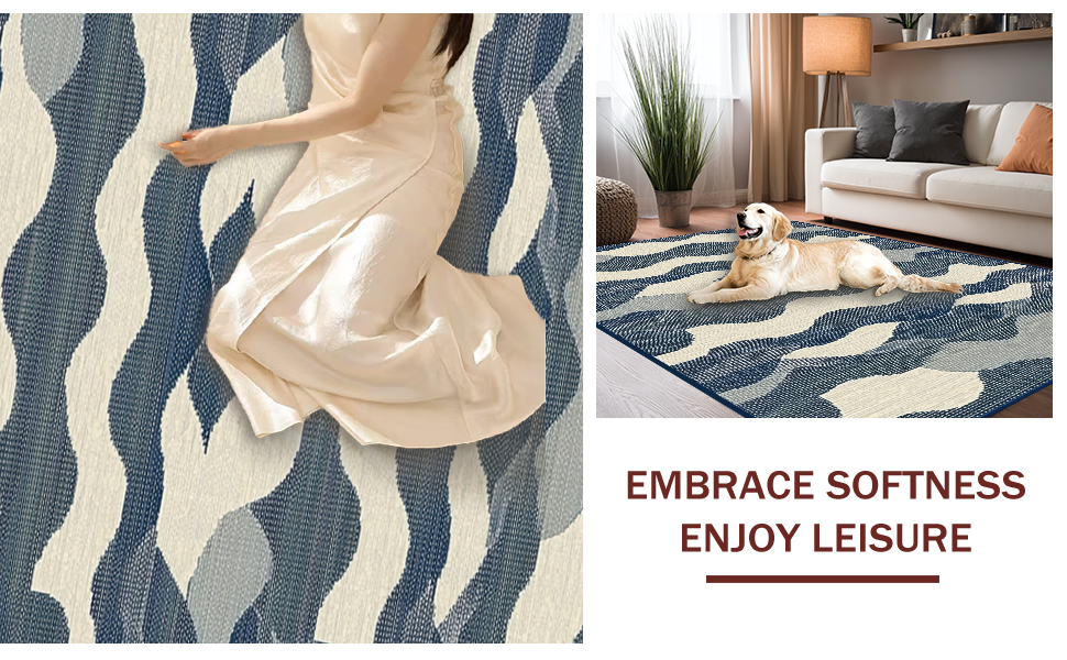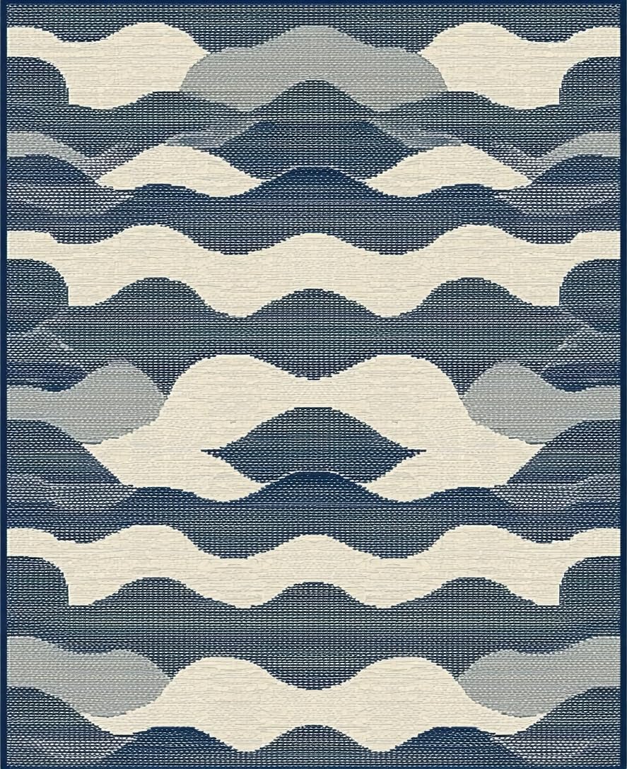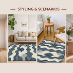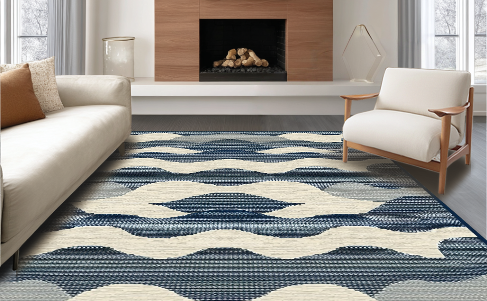 Ultra Soft Area Rug, Non Slip, Stain Resistant, Washable Area Rugs for Living Room, Bedroom, Navy Scalloped Natural Texture(Blue) Overview: