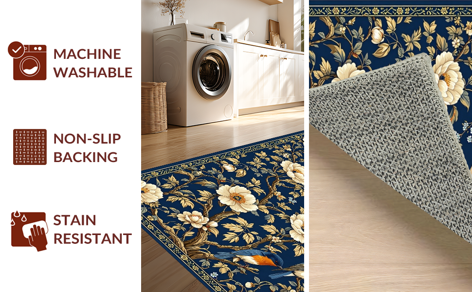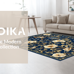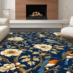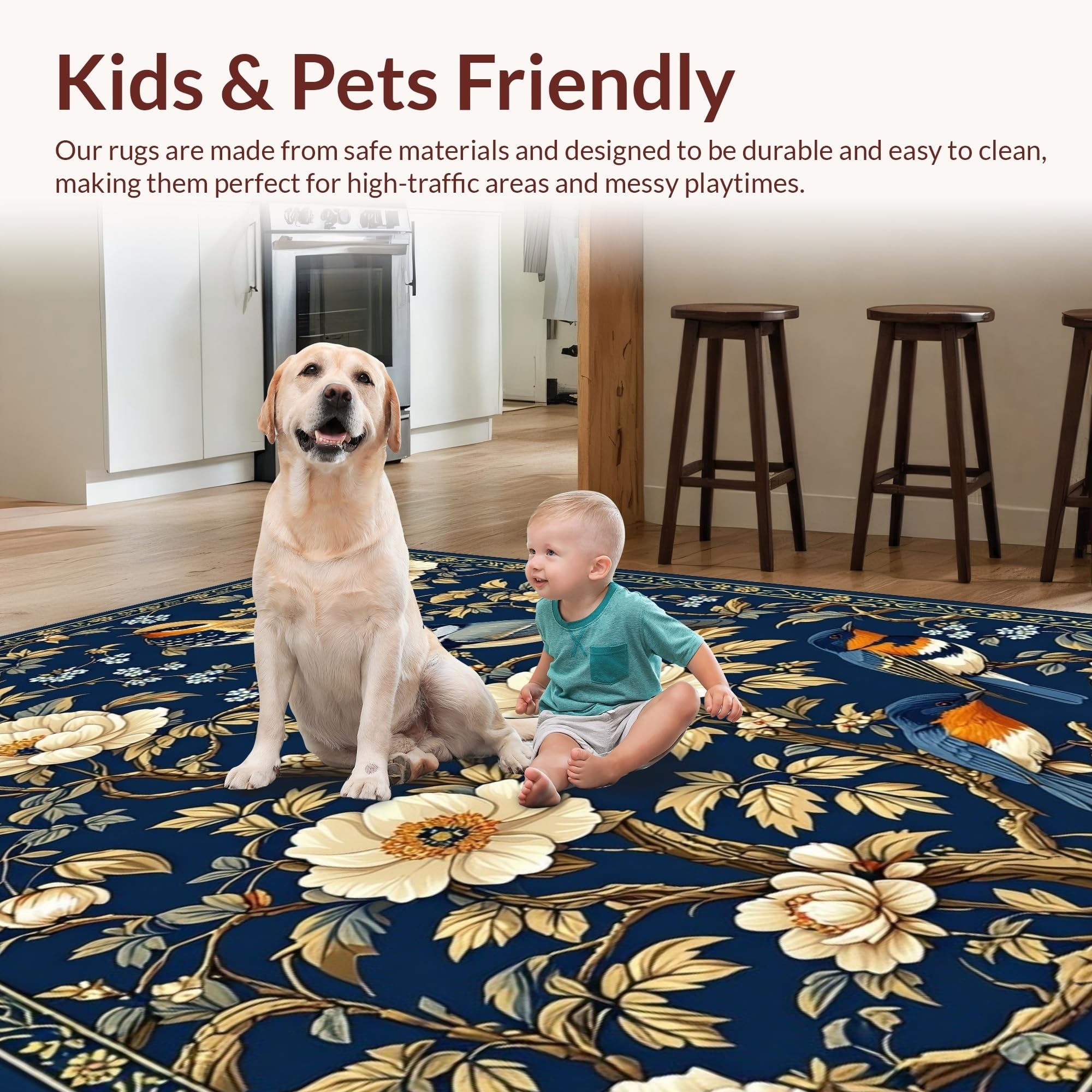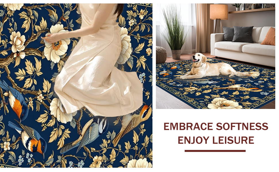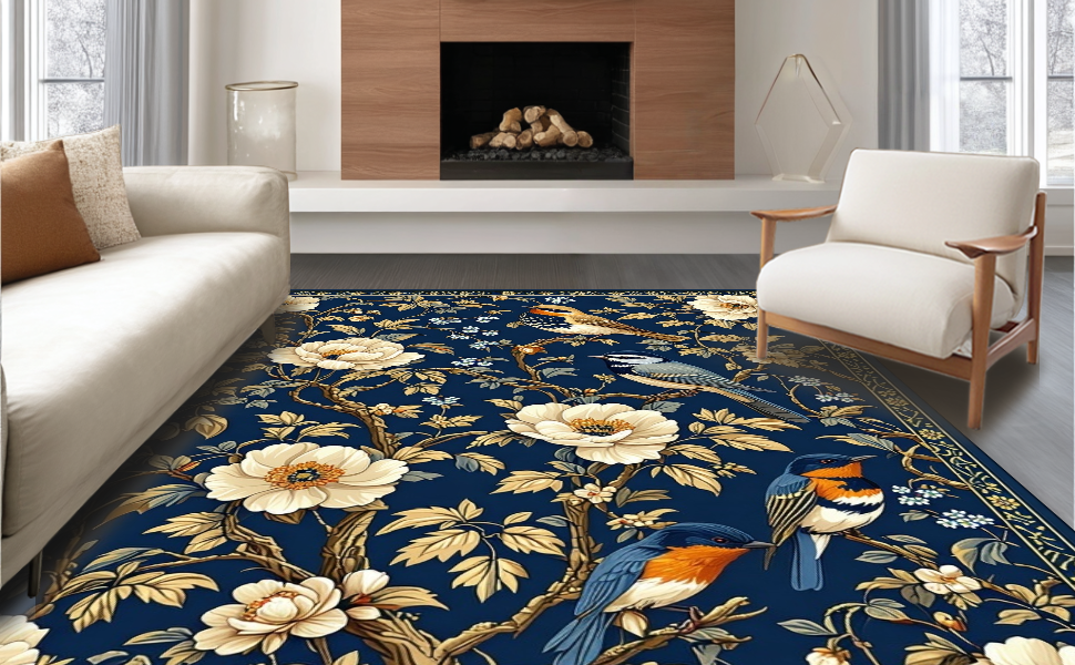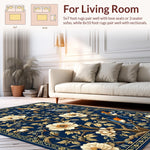 Ultra Soft Area Rug, Non Slip, Stain Resistant, Washable Area Rugs for Living Room, Bedroom, Navy Toned Floral Elegance(Blue) Overview:
