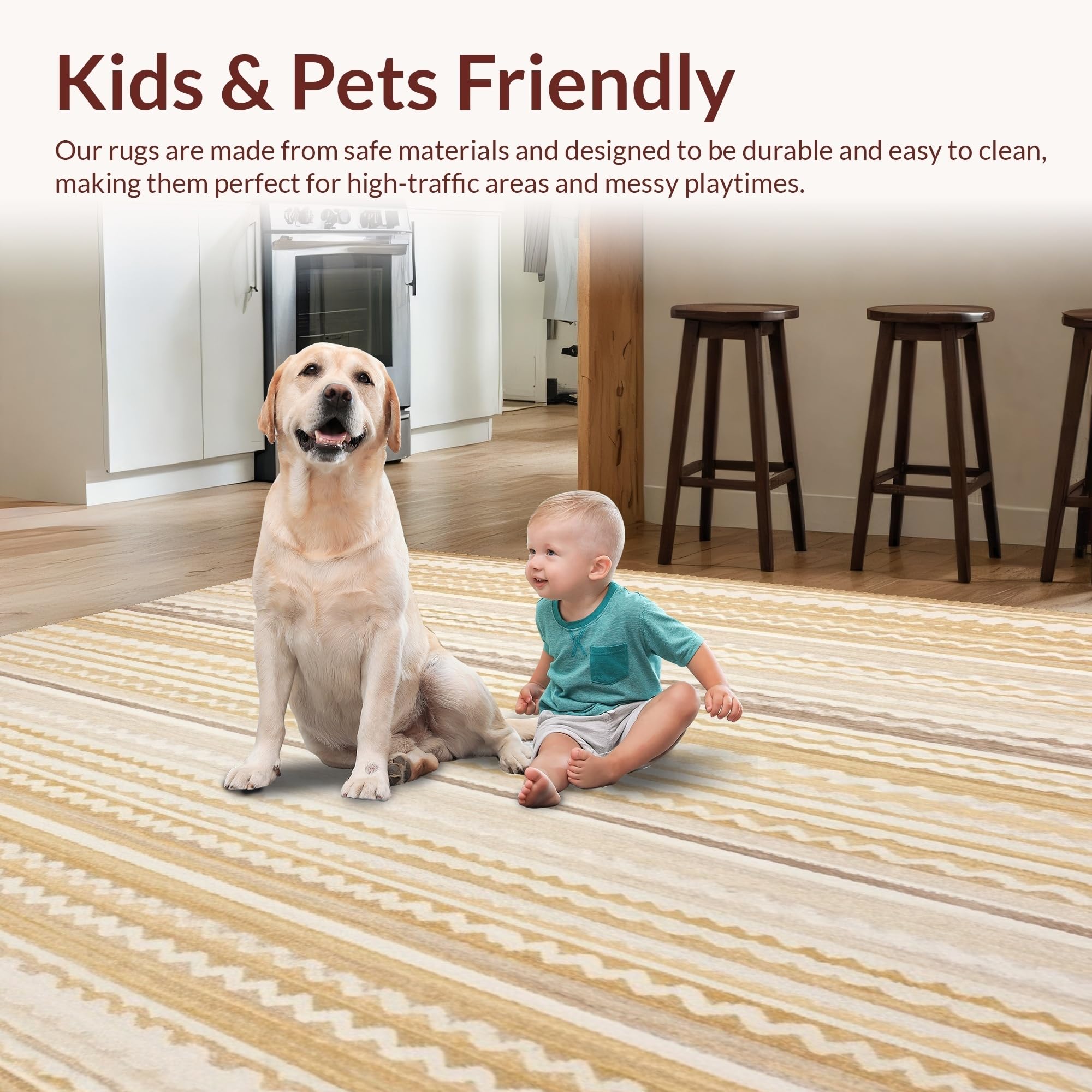 Ultra Soft Area Rug, Non Slip, Stain Resistant, Washable Area Rugs for Living Room, Bedroom, Neutral Circular with Textured Geometric Chevron and Boho Style(Beige) Overview: