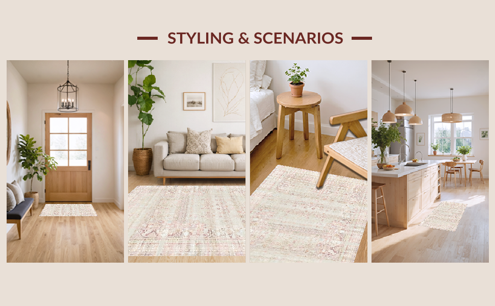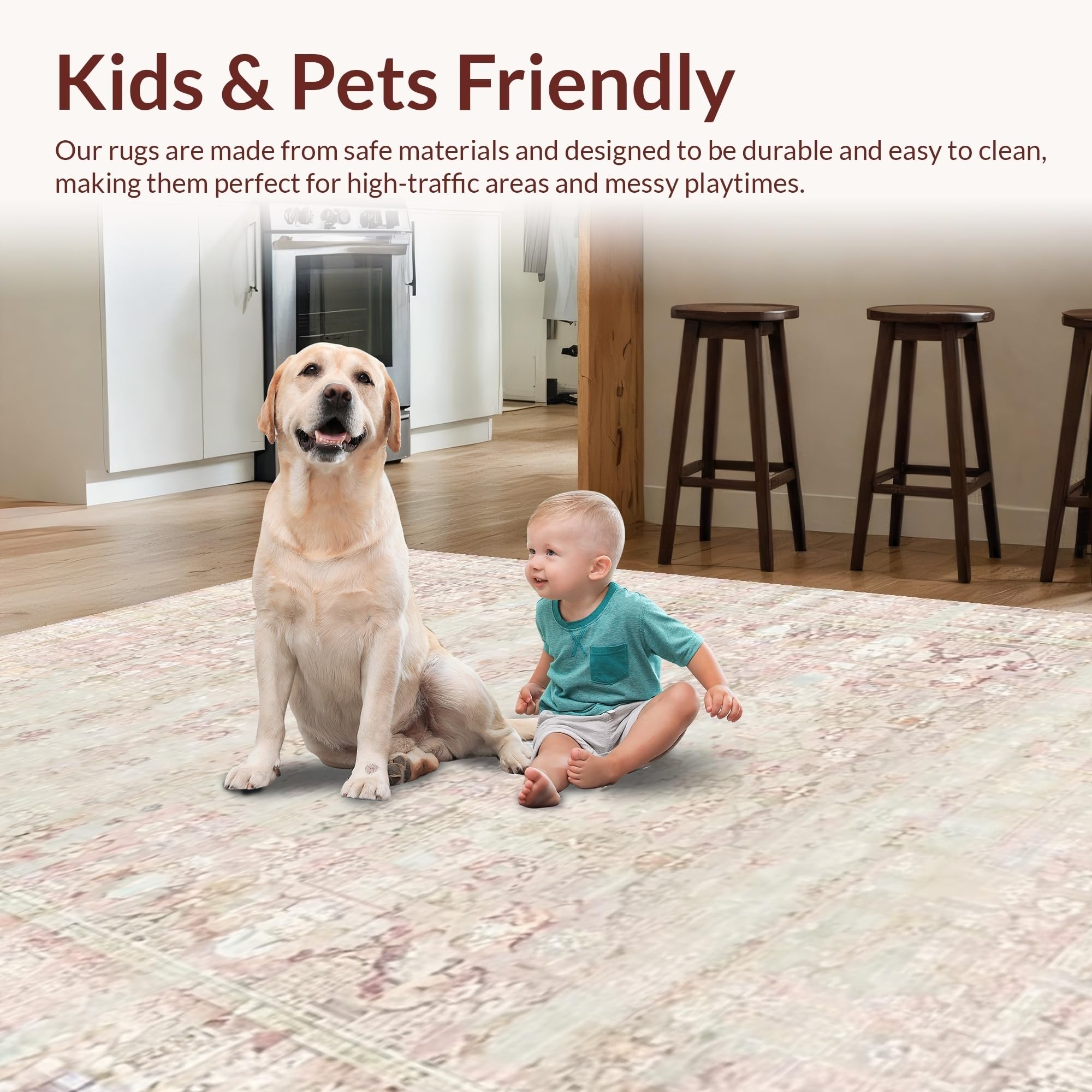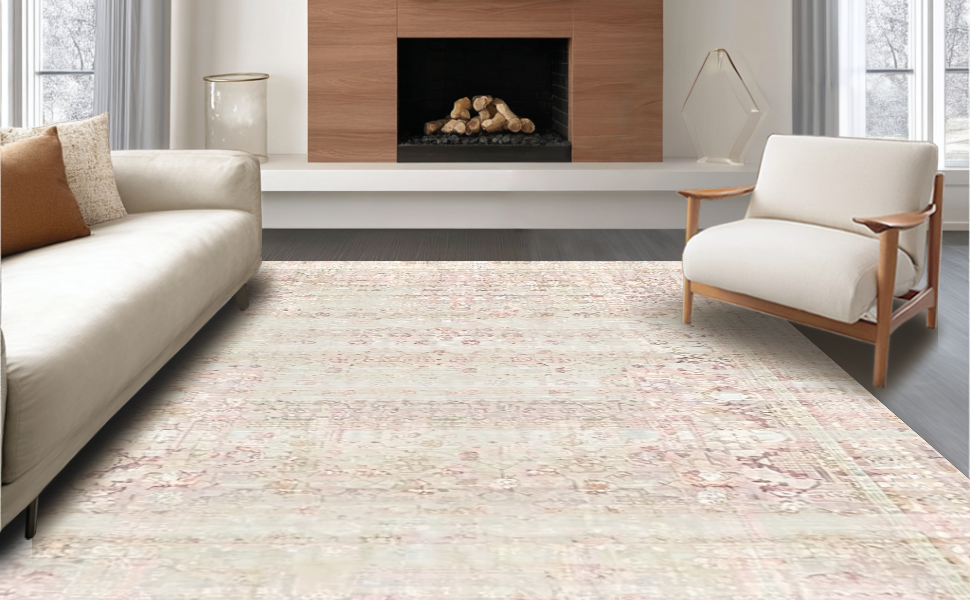 Ultra Soft Area Rug, Non Slip, Stain Resistant, Washable Area Rugs for Living Room, Bedroom, Neutral Light Boho Pattern(Pink) Overview: