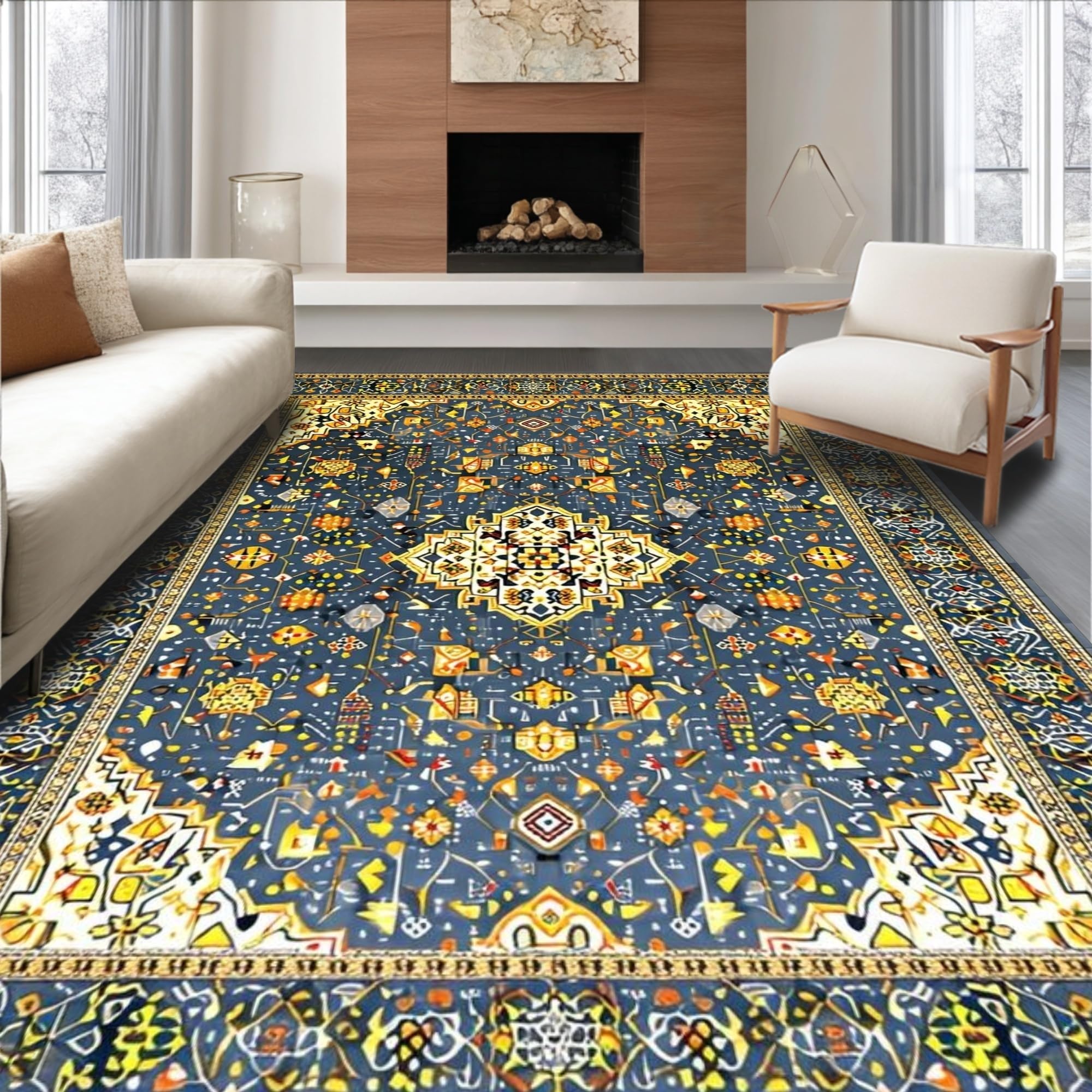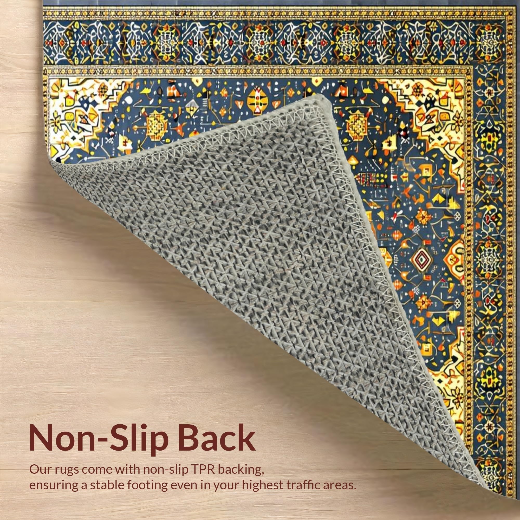 Ultra Soft Area Rug, Non Slip, Stain Resistant, Washable Area Rugs for Living Room, Bedroom, Neutral Toned Medallion Pattern(Blue) Overview: