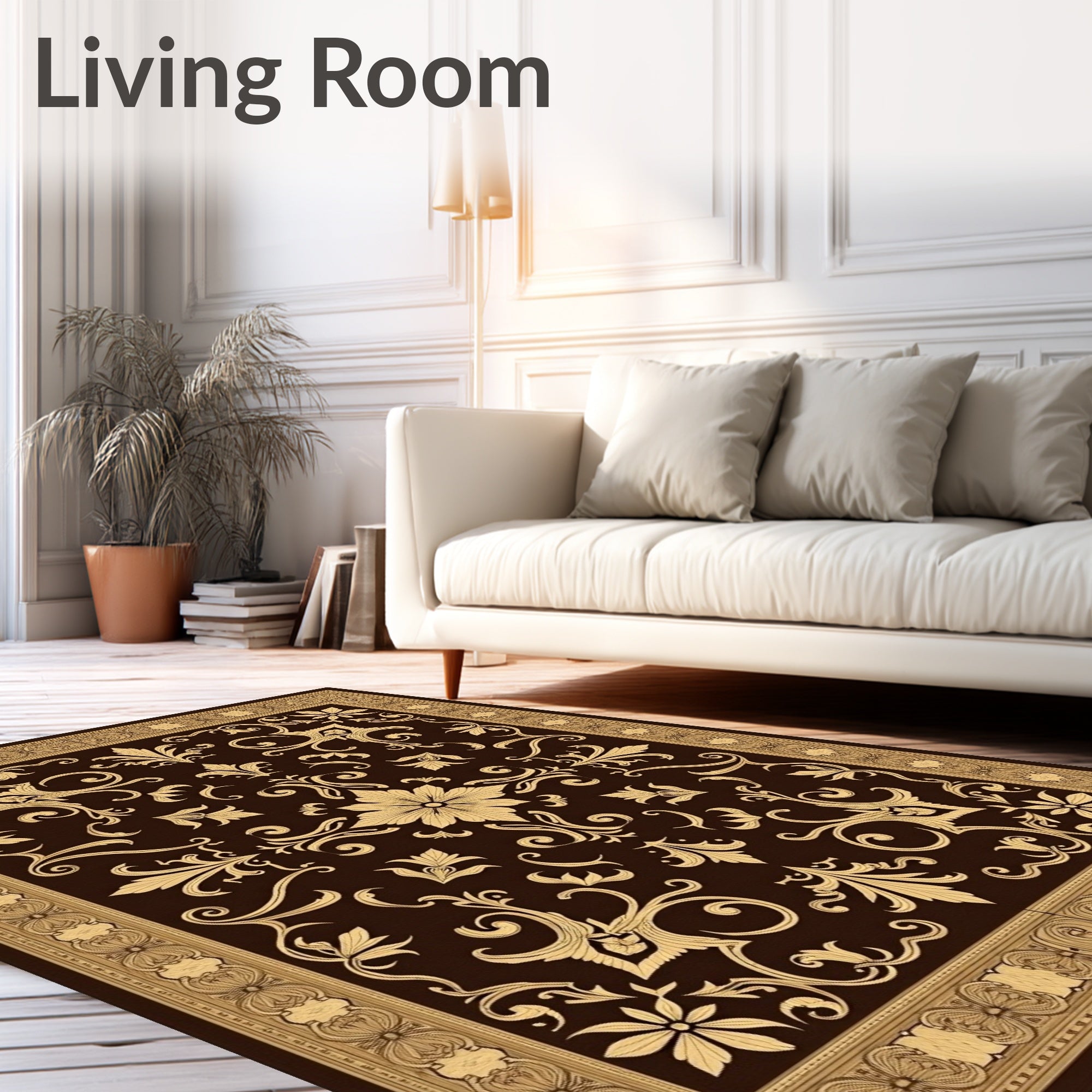 Flatwoven High Traffic Area Rug, Noble Estate Damask Baroque Elegant, Non Slip, Stain Resistant, Washable Area Rugs for Living Room, Bedroom (Brown) Overview: