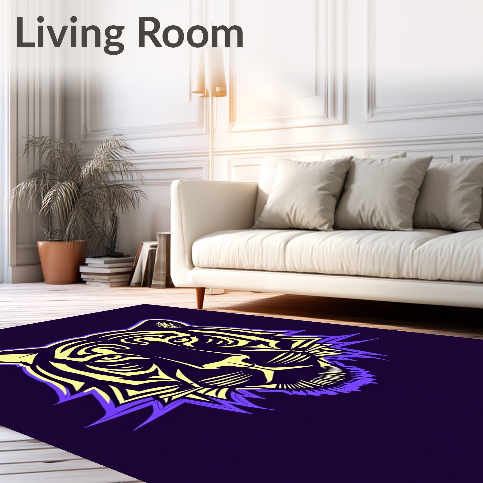 Ultra Soft Area Rug, Non Slip, Stain Resistant, Washable Area Rugs for Living Room, Bedroom, Noble Feline Exotic Prowling Wild Enchanting Decorative(Gold) Overview: