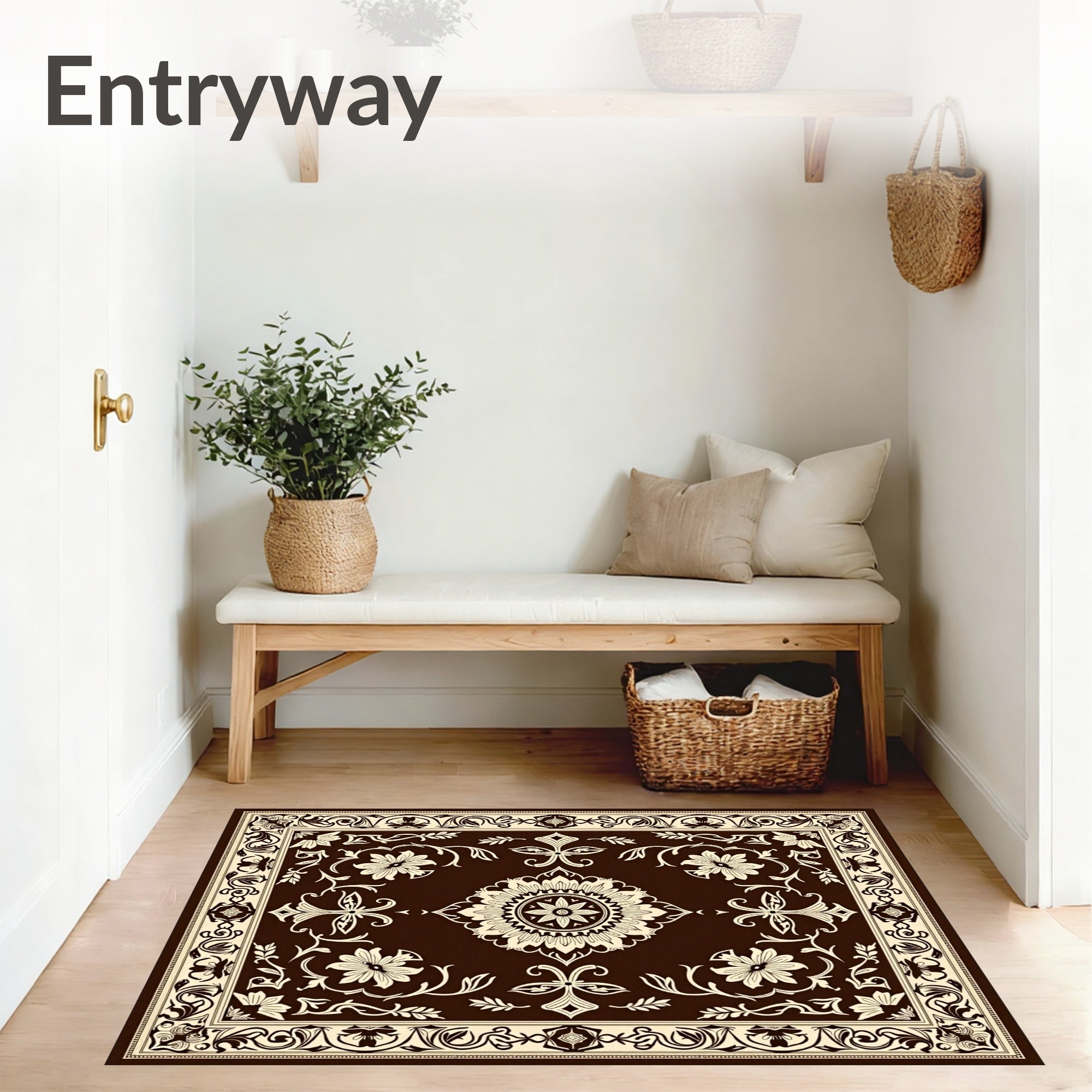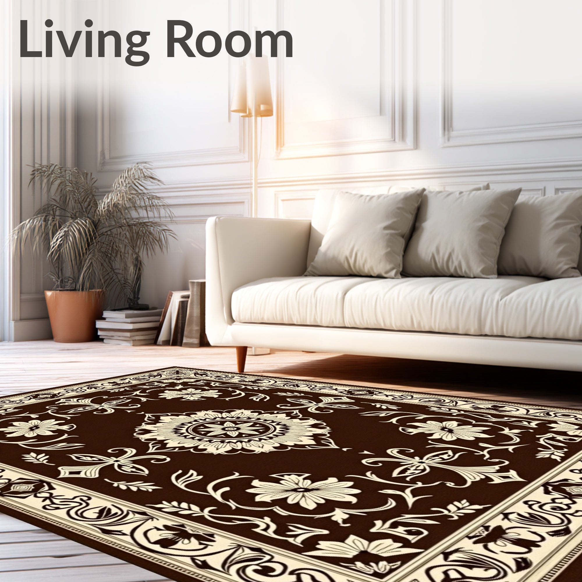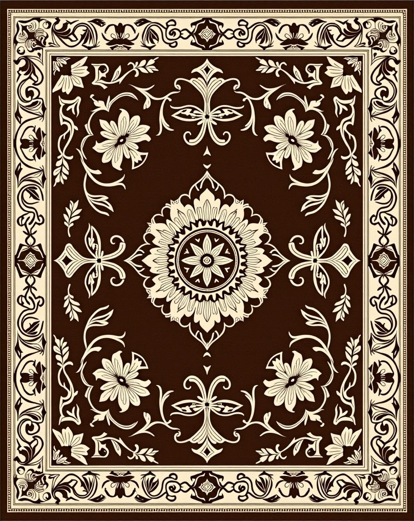 Flatwoven High Traffic Area Rug, Noble Symmetrical Floral Damask Timeless Decorative, Non Slip, Stain Resistant, Washable Area Rugs for Living Room, Bedroom (Brown) Overview: