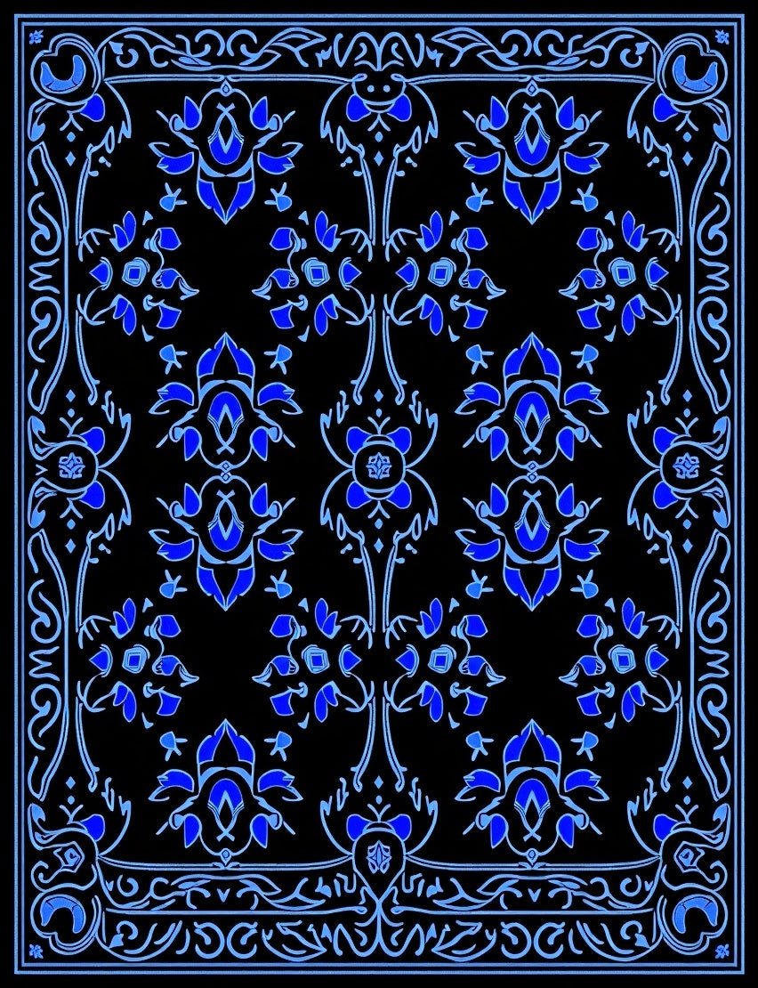 Nocturne Bloom Interlocking Floral Design with Subdued Sapphire Accents(Blue)