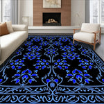 Flatwoven High Traffic Area Rug, Nocturne Bloom Interlocking Floral Design with Subdued Sapphire Accents, Non Slip, Stain Resistant, Washable Area Rugs for Living Room, Bedroom (Blue) Overview: