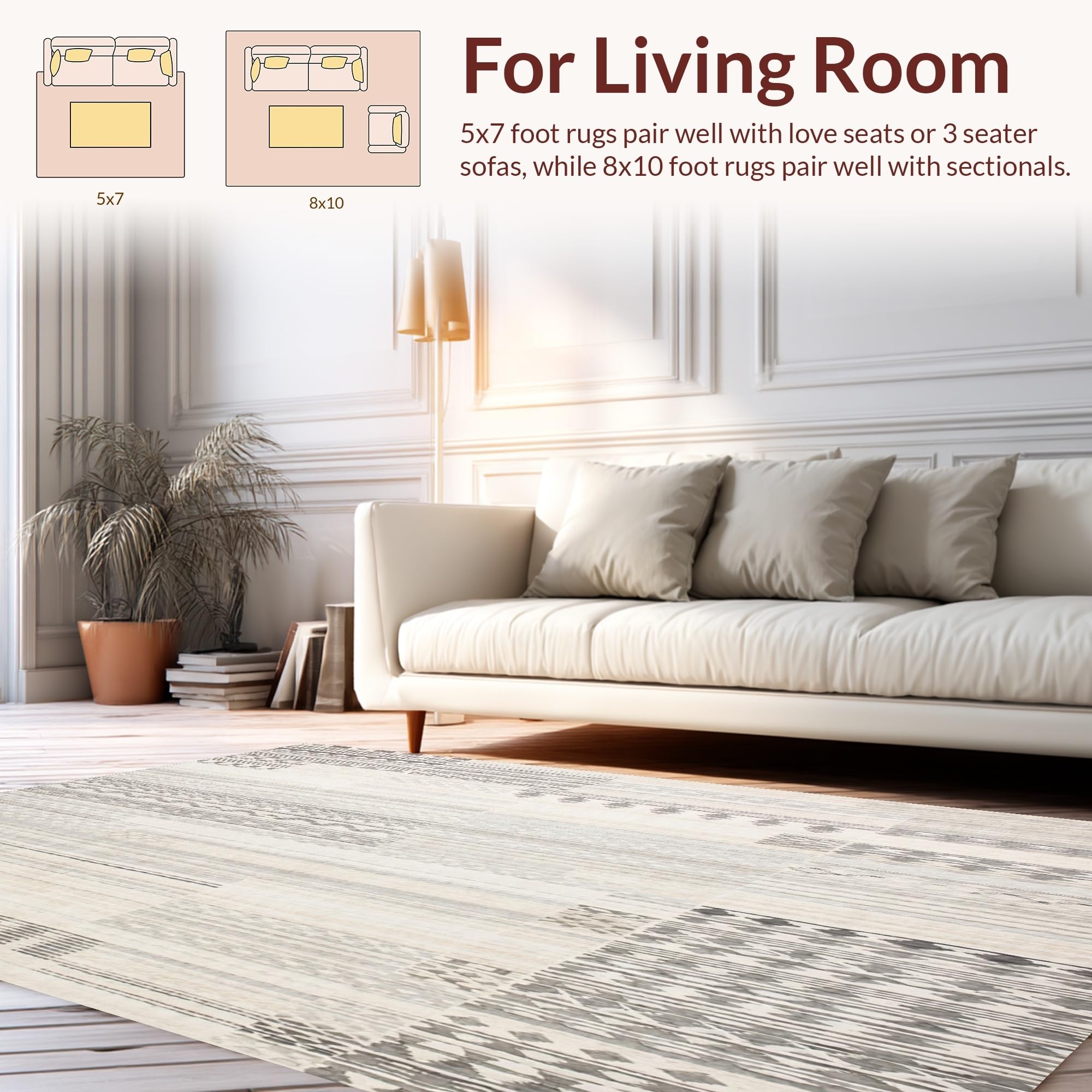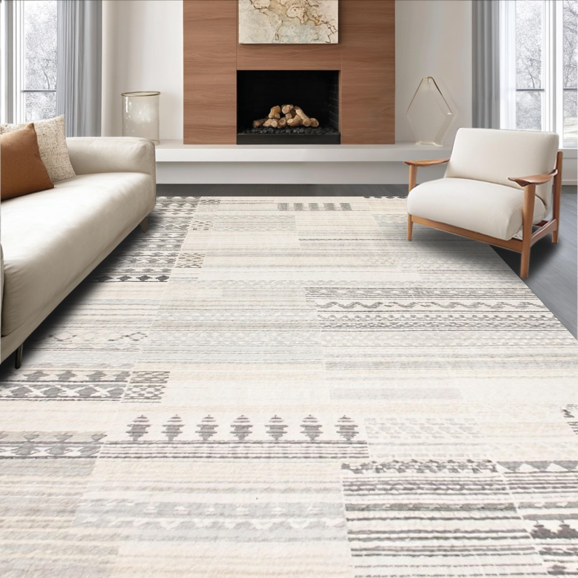 Ultra Soft Area Rug, Non Slip, Stain Resistant, Washable Area Rugs for Living Room, Bedroom, Non Slip Beige Geometric Runner Modern Boho Print(Gray) Overview: