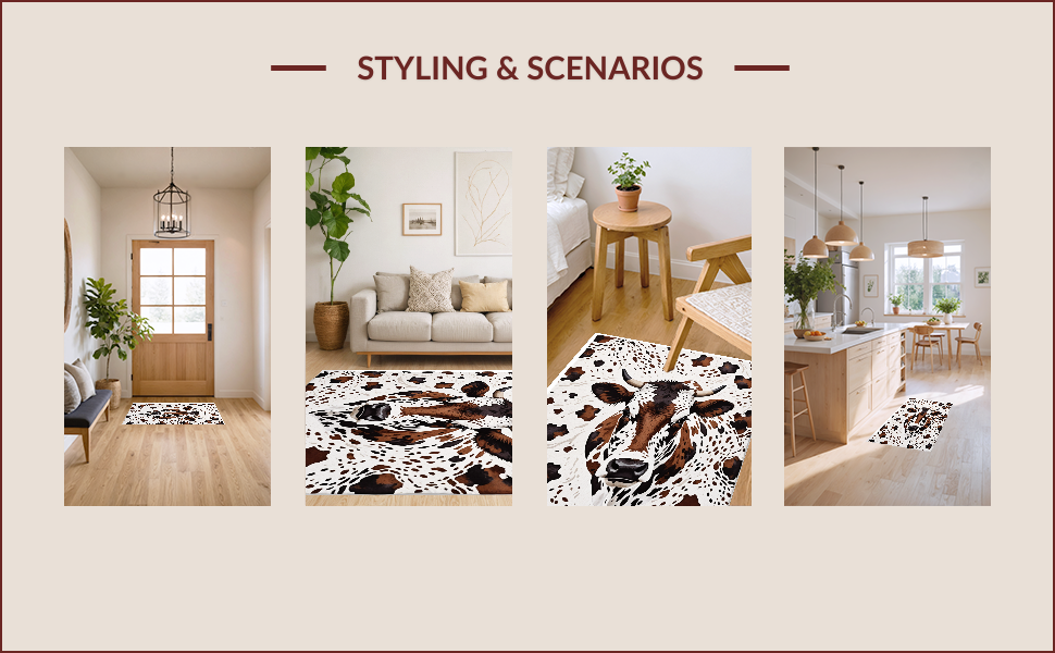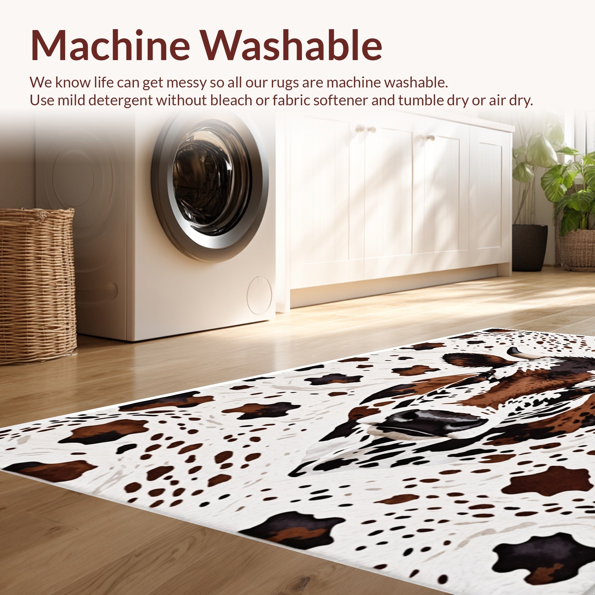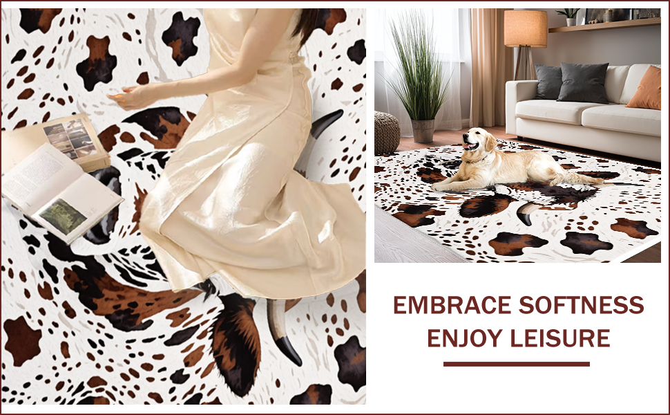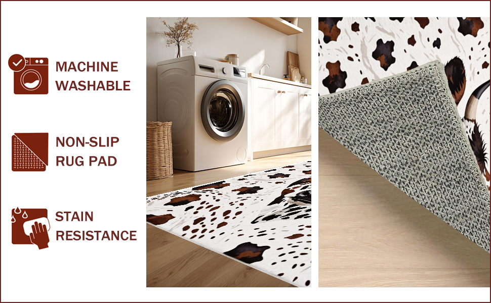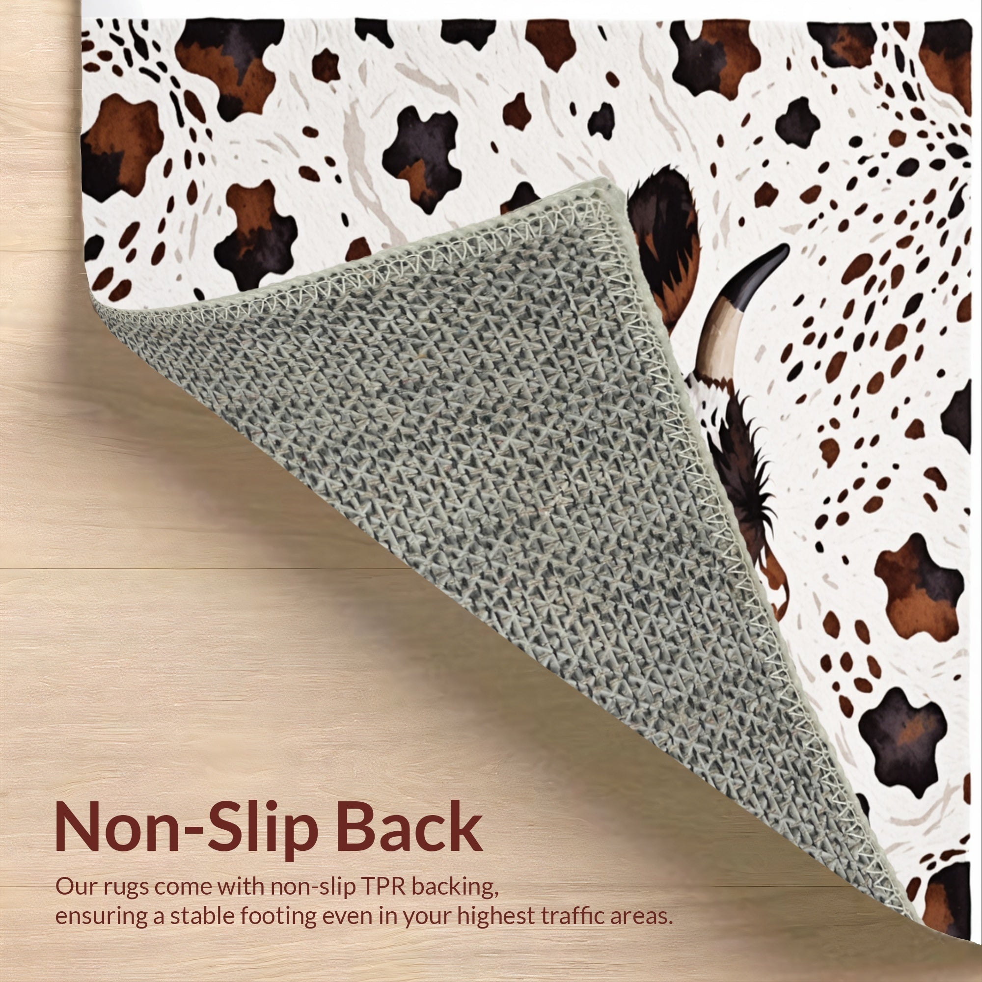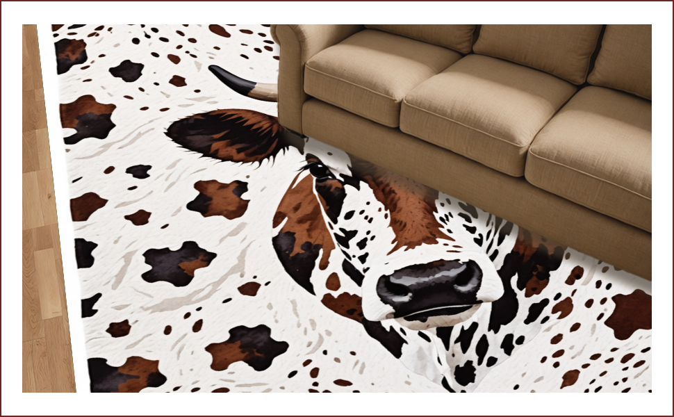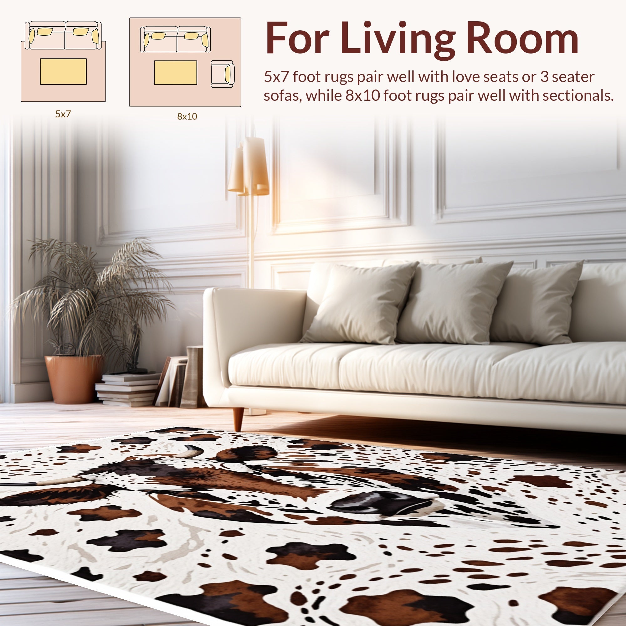 Ultra Soft Area Rug, Non Slip, Stain Resistant, Washable Area Rugs for Living Room, Bedroom, Non-Slip Cow Print Western Decor(White) Overview: