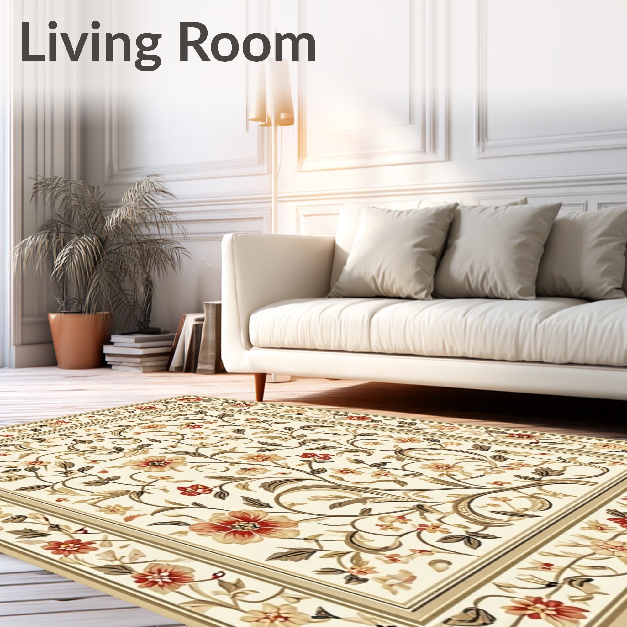 Flatwoven High Traffic Area Rug, Non Slip Floor Floral with Absorbent Features, Non Slip, Stain Resistant, Washable Area Rugs for Living Room, Bedroom (Beige) Overview: