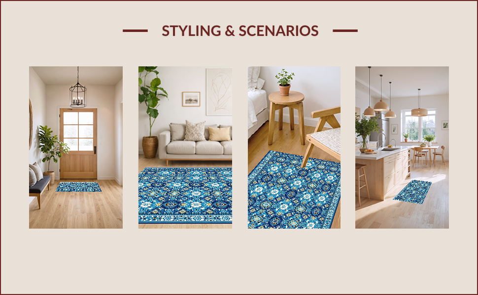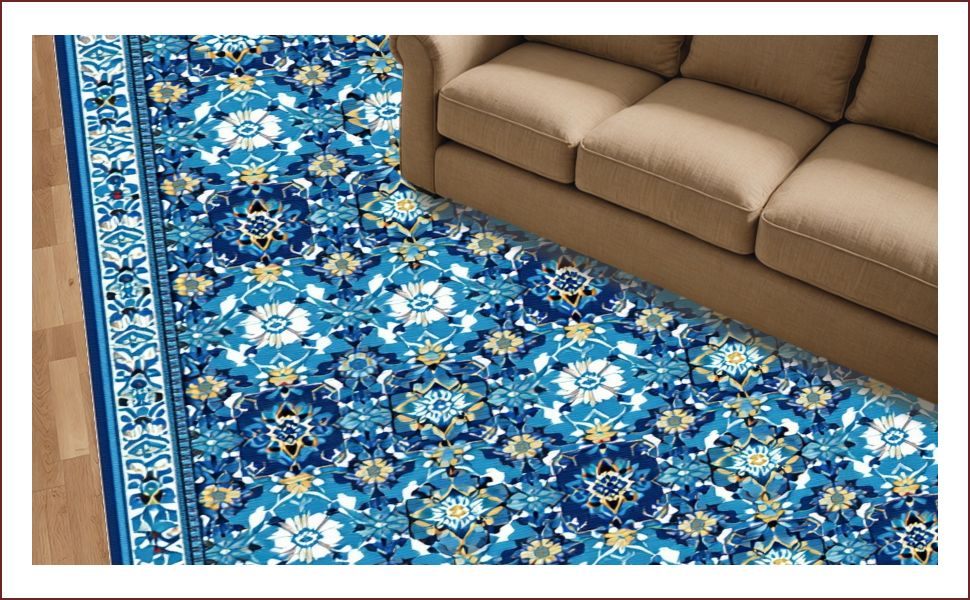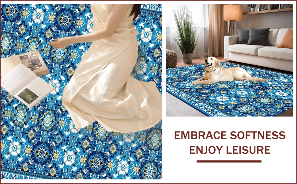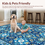 Ultra Soft Area Rug, Non Slip, Stain Resistant, Washable Area Rugs for Living Room, Bedroom, Non-Slip Vintage Geometric Living Room Rug(Blue) Overview: