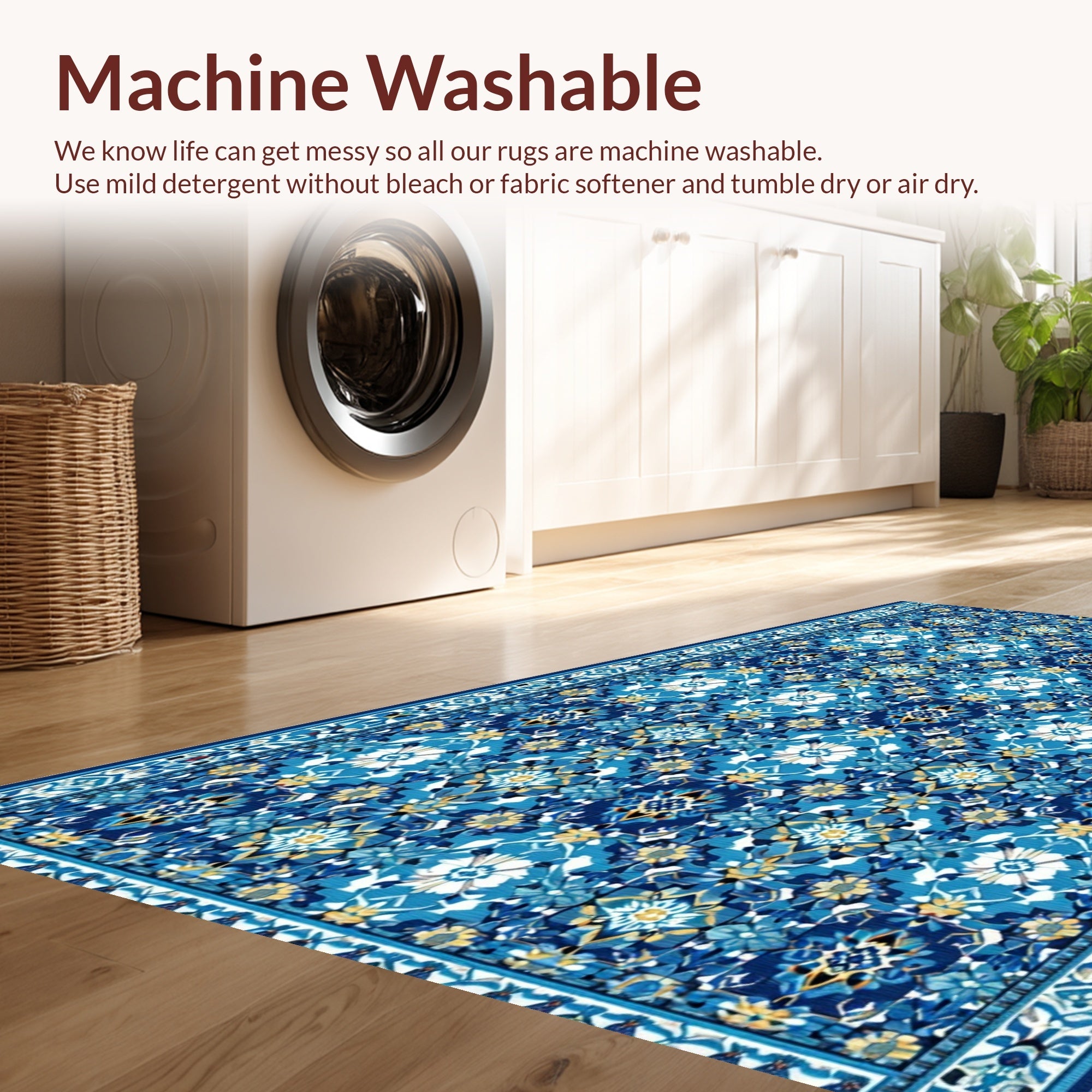 - Machine Washable: Our rugs can be easily thrown in the wash machine.