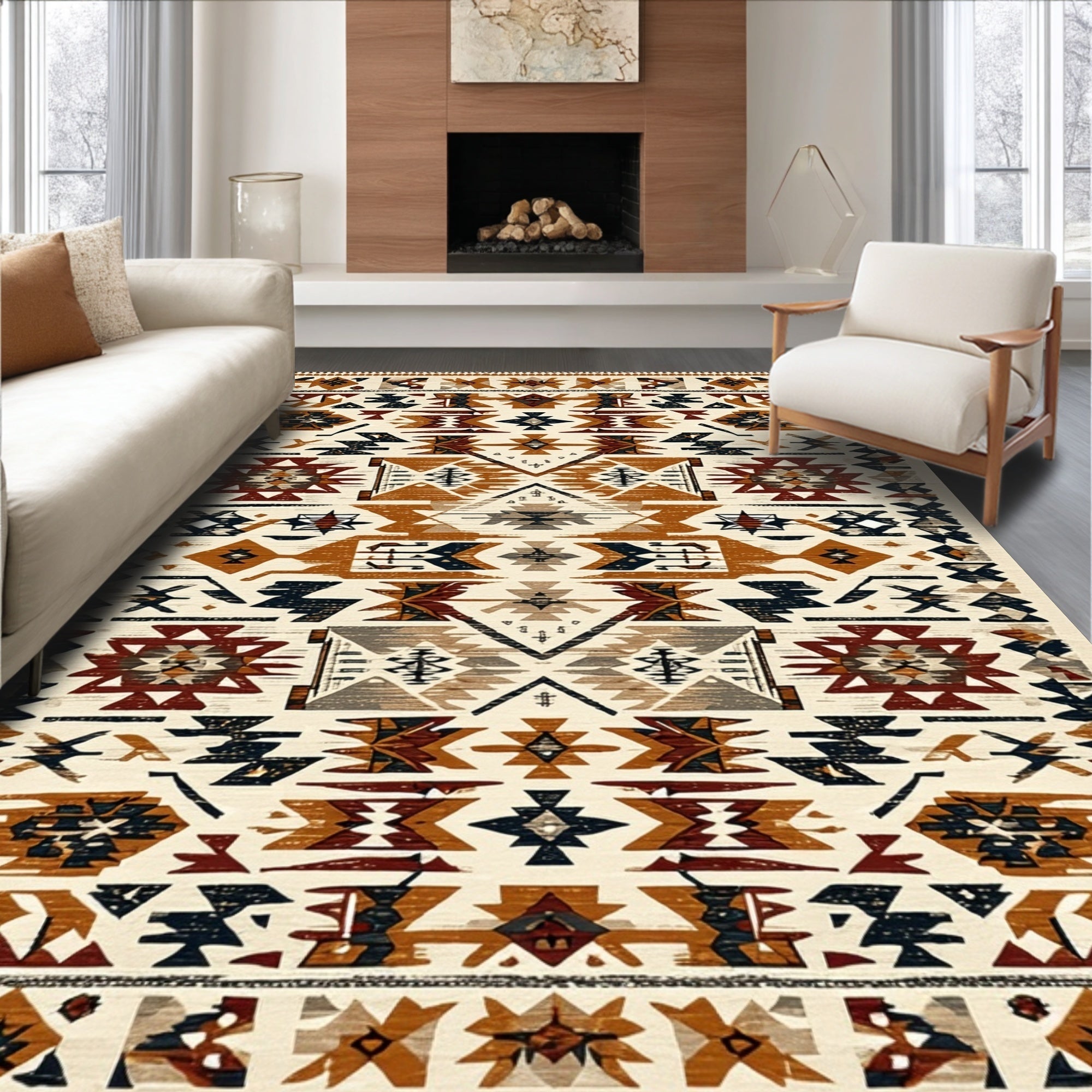 Ultra Soft Area Rug, Non Slip, Stain Resistant, Washable Area Rugs for Living Room, Bedroom, Non-Slip Western Aztec Living Room Rug(Brown) Overview: