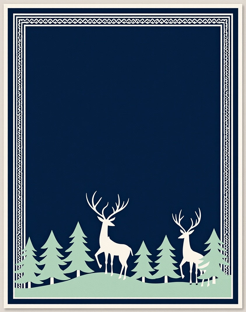 Nordic Caribou Doormat with Evergreen Tree Border(Blue)