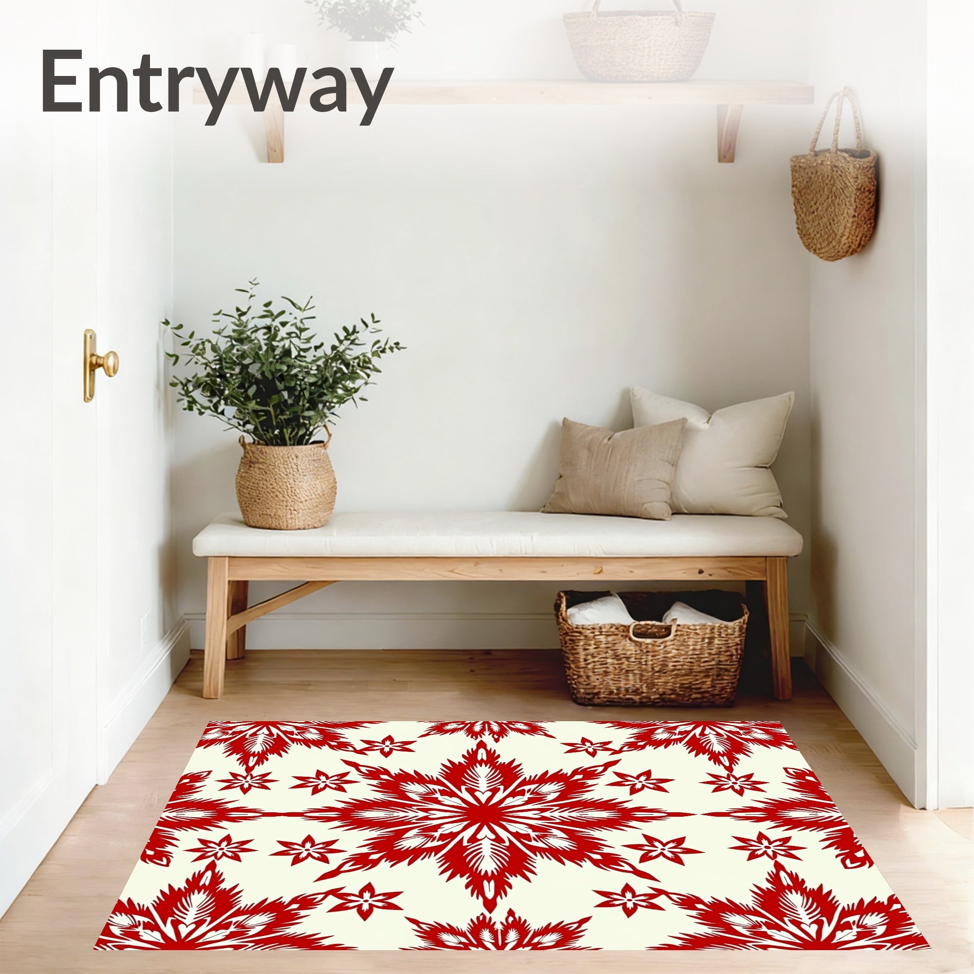 Ultra Soft Area Rug, Non Slip, Stain Resistant, Washable Area Rugs for Living Room, Bedroom, Nordic Celebration Traditional Embellishment(Red) Overview: